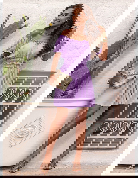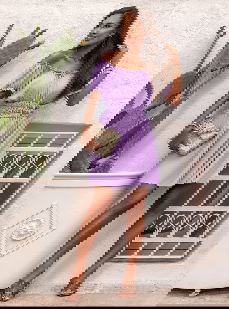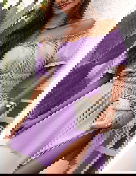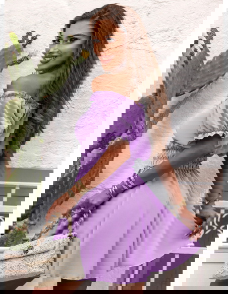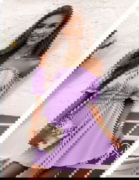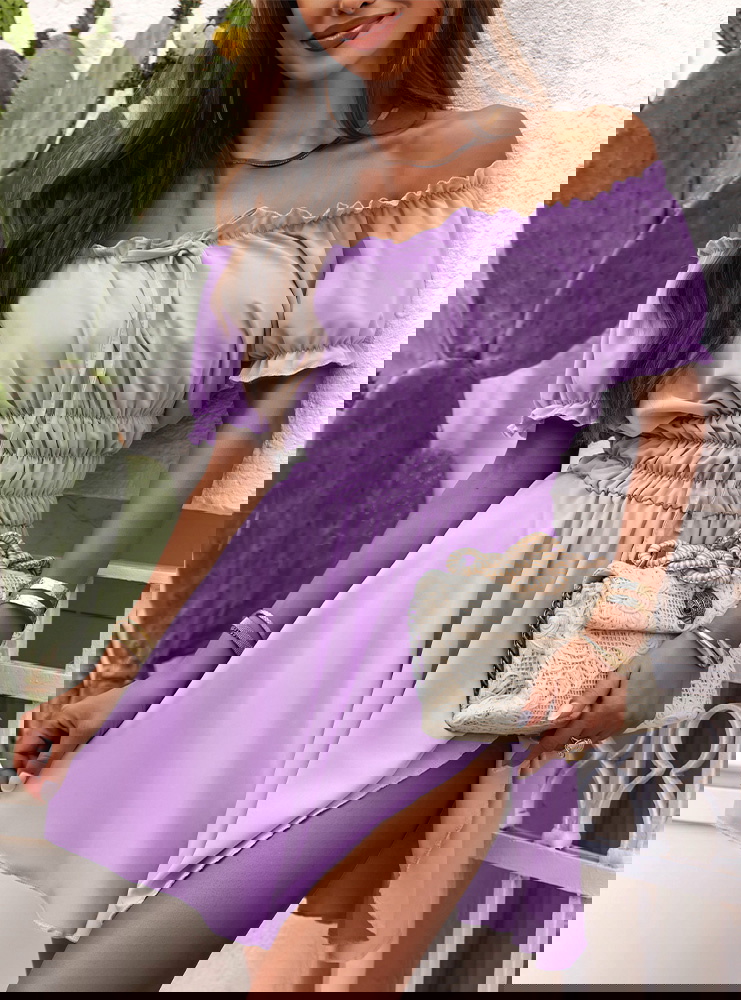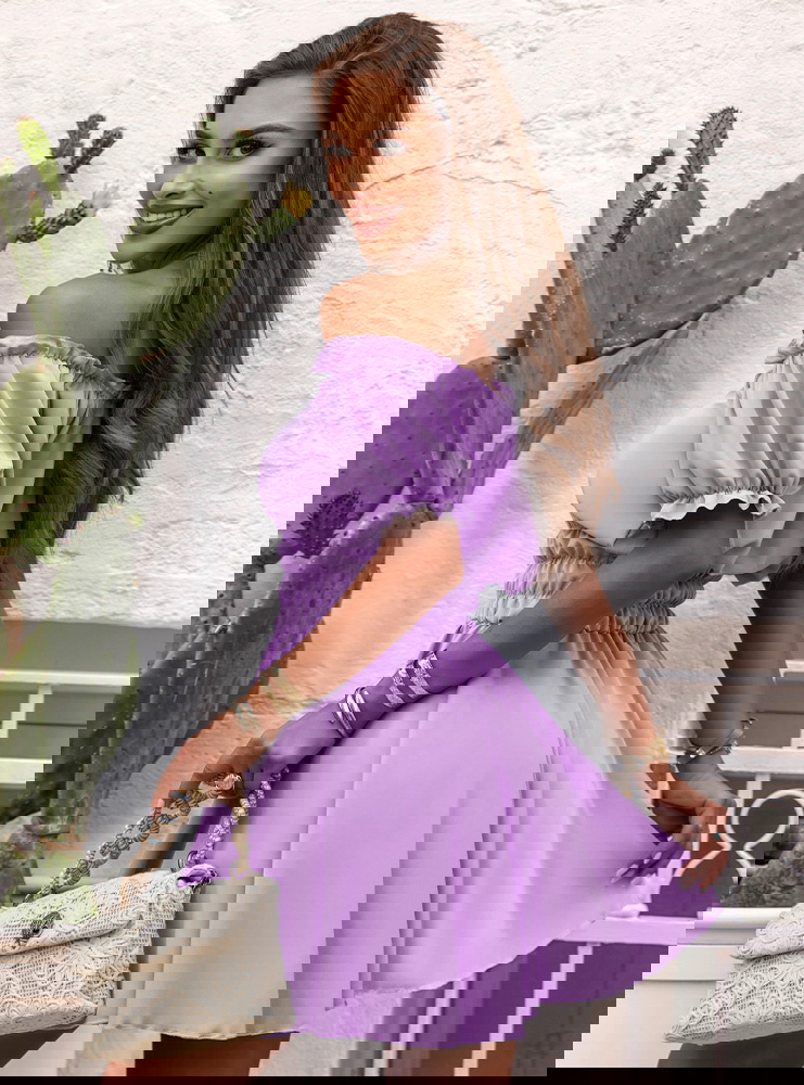 Liliowa sukienka mini typu hiszpanka Miray to małe letnie marzenie – kobieca, lekka i romantyczna. Fason hiszpanki pięknie eksponuje ramiona, dodając całości subtelnej zmysłowości. Zwiewny krój sprawia, że czujesz się w niej swobodnie i naturalnie. To model, który pokochasz za komfort i efektowność w jednym. Bez względu na to, czy stawiasz na minimalistyczną stylizację czy lubisz bawić się dodatkami – ona dopasuje się do Ciebie. Liliowa hiszpanka to must-have sezonu, jeśli marzysz o lekkiej, kobiecej sukience, która podkreśla Twój styl. Wystarczy ją założyć, by poczuć klimat La Dolce Vita.