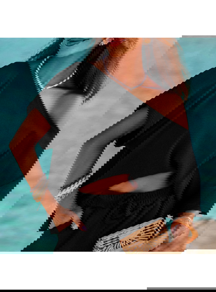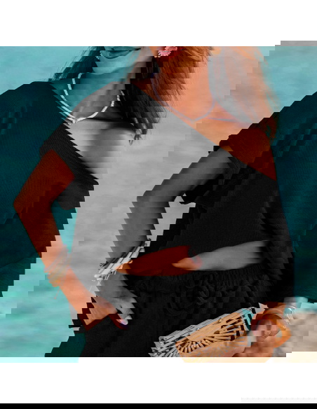 Czarny prążkowany komplet top i...