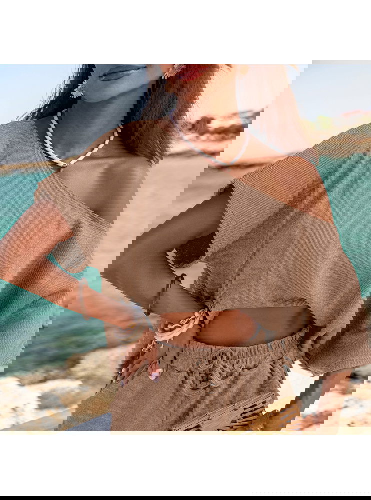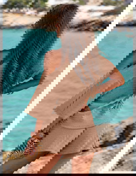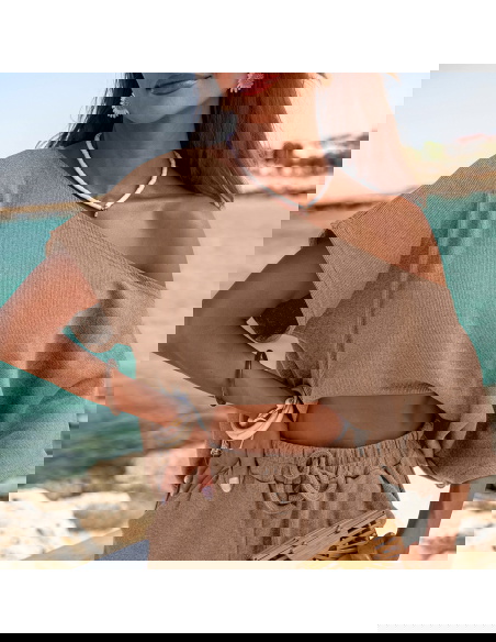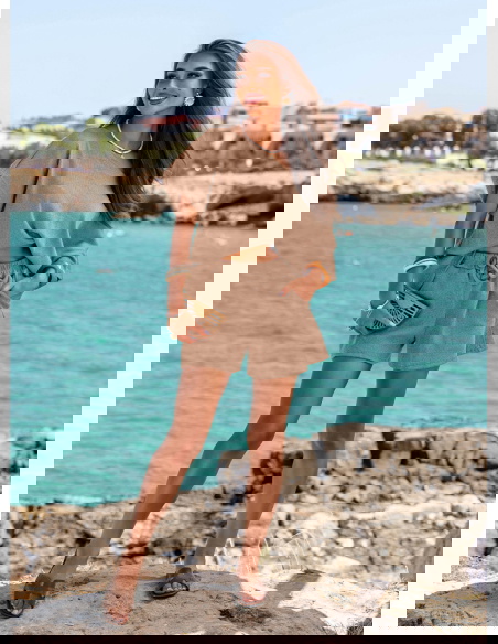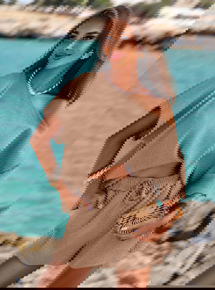 Beżowy prążkowany komplet top i spodenki z gumką w pasie Luxia to kwintesencja luzu w wydaniu, które nie traci na elegancji. Naturalny, jasny odcień beżu działa uspokajająco i stylowo zarazem, świetnie wpisując się w letnią aurę. To propozycja dla kobiet, które lubią mieć wszystko pod kontrolą – również swój komfort i wygląd. Oversize’owy top układa się miękko na ciele, odsłaniając subtelnie ramiona. Spodenki z elastycznym pasem dopasowują się do sylwetki i pozwalają na pełną swobodę ruchu. Prążkowana faktura dodaje całości charakteru, nie dominując jednak stylizacji. To komplet, który nie wymaga specjalnych okazji – bo sam w sobie tworzy nastrój. Świetnie sprawdza się w miejskim zgiełku, na plaży, ale też w domowym zaciszu. Delikatność koloru beżowego pozwala skupić się na dodatkach i detalach – to Twoja baza do tworzenia wielu stylów. A wszystko to z lekkością, jaka towarzyszy kolekcji La Dolce Vita.