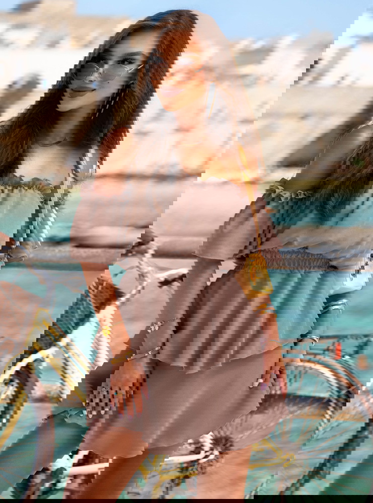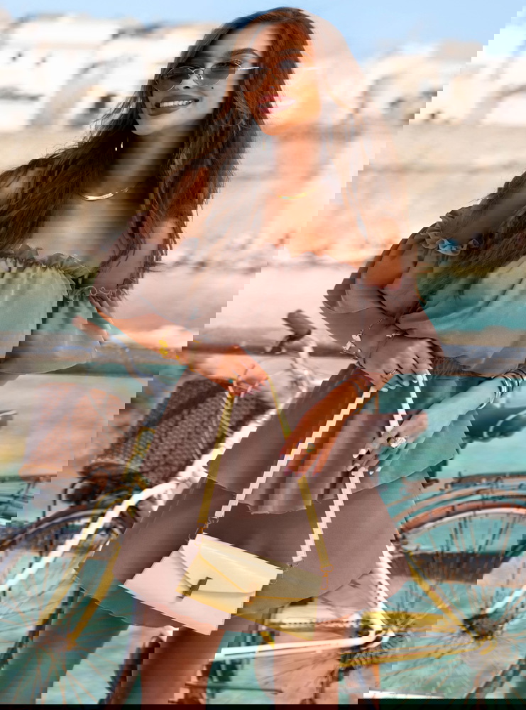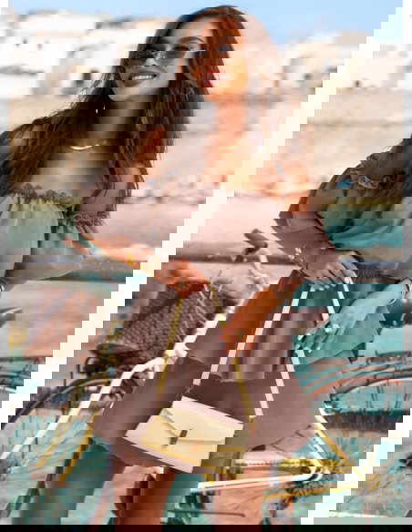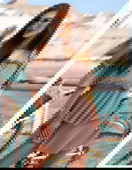 Kombinezon jak sukienka z odkrytymi ramionami Lodoletta - mocha mousse jest idealny na wakacyjne spacery, wycieczki czy letnie spotkania z przyjaciółkami. Możesz założyć go na plażę, ale sprawdzi się też w kawiarni, na targu czy kolacji pod gołym niebem. Wystarczy zmienić dodatki – z sandałków na espadryle, z plecionki na złoto – i masz gotową nową stylizację. Ten model świetnie odnajdzie się również na miejskich wakacjach, gdzie chcesz wyglądać modnie, ale swobodnie. Niezastąpiony tam, gdzie liczy się styl i komfort w jednym.