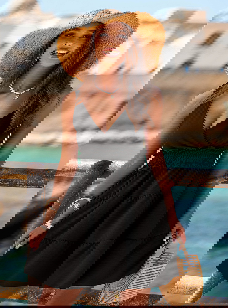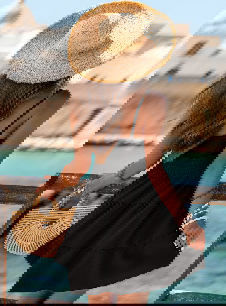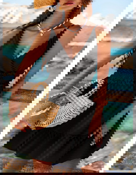 Czarna rozkloszowana sukienka na ramiączkach Jauste to idealna propozycja na letni wyjazd, weekendowy wypad za miasto lub spacer po plaży. Świetnie sprawdzi się także na rodzinnych przyjęciach, niezobowiązujących spotkaniach czy wyjściach z przyjaciółmi. Jej uniwersalność pozwala wystylizować ją zarówno na dzień, jak i na wieczór – wystarczy zmienić dodatki. Założysz ją z powodzeniem do sandałków, espadryli czy klapek. To sukienka, która daje Ci pełną swobodę i luz, zachowując przy tym klasę.