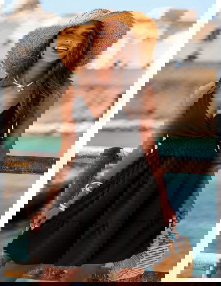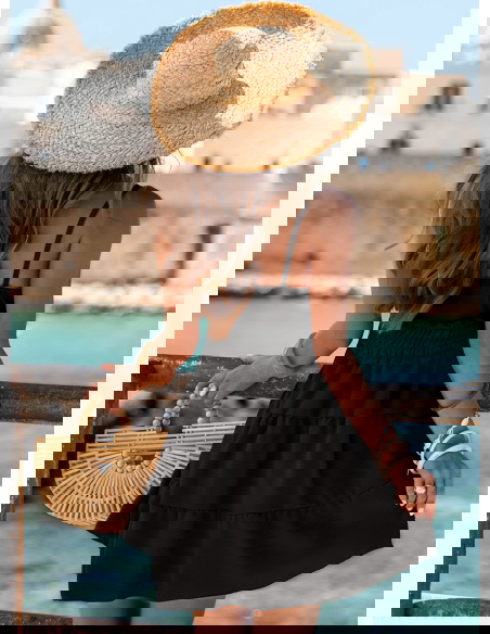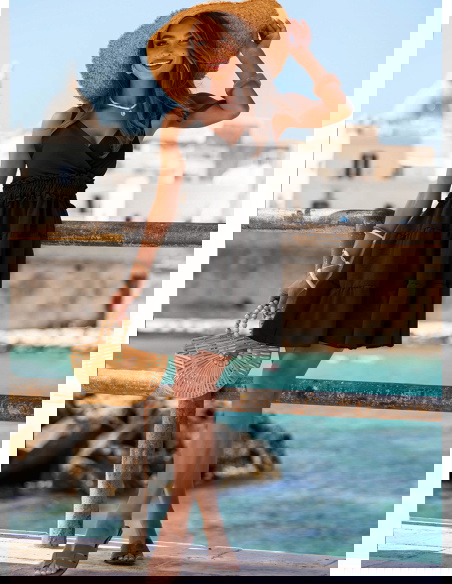 Czarna rozkloszowana sukienka na ramiączkach Jauste to kwintesencja letniego stylu z odrobiną włoskiej swobody. Zjawiskowa w prostocie, przyciąga spojrzenia i dodaje pewności siebie. Ten model został stworzony z myślą o kobietach, które chcą czuć się kobieco i lekko – nawet w upalne dni. Czerń, choć klasyczna, nabiera tutaj wyjątkowej energii dzięki delikatnym ramiączkom i dziewczęcemu fasonowi. To sukienka, która nie potrzebuje wielu dodatków, by robić wrażenie. Jej lekki, zwiewny krój sprawia, że każdy krok wygląda subtelnie i elegancko. Wyjątkowo dobrze układa się na sylwetce, eksponując talię i ramiona. To propozycja idealna na wakacyjny spacer wśród cyprysów, ale też na wieczorną kolację przy blasku świec. Dzięki niej poczujesz się, jak bohaterka włoskiego filmu. A przy tym wszystkim – pozostajesz sobą.