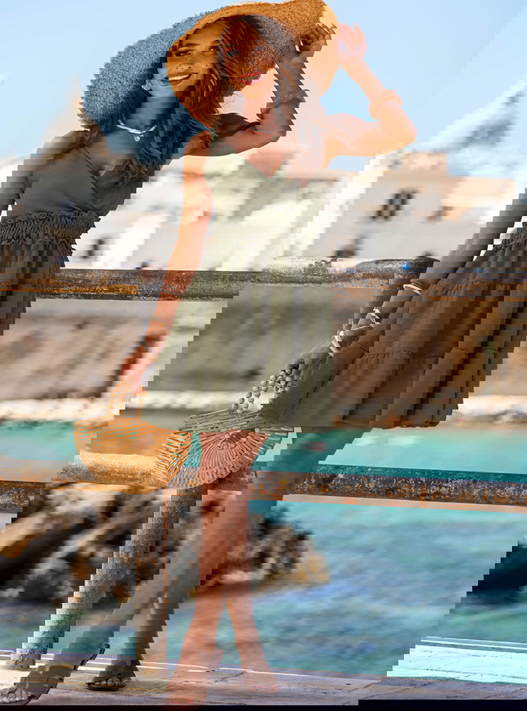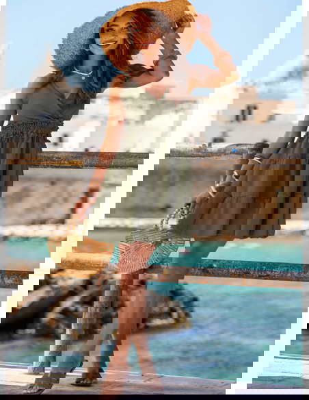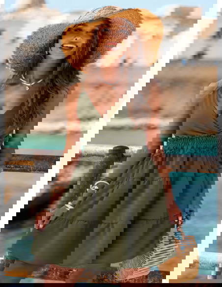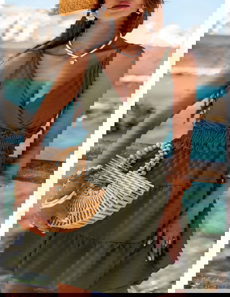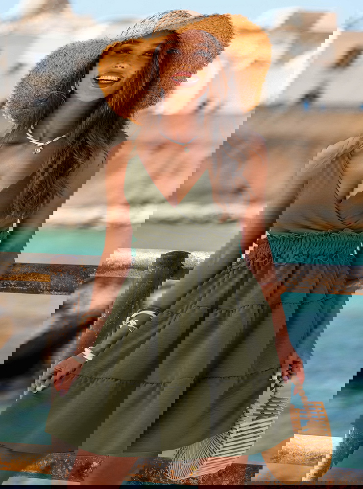 Rozkloszowana sukienka na ramiączkach Jauste - khaki to propozycja, która subtelnie łączy luz z kobiecością. Jej odcień przywołuje na myśl włoskie ogrody i długie popołudnia spędzane w cieniu cyprysów. To sukienka, która nie krzyczy – ale mówi wszystko. Wystarczy jedno spojrzenie, by poczuć wakacyjny klimat i letnią lekkość. Ten model został stworzony z myślą o kobietach, które cenią wygodę, ale nie rezygnują ze stylu. Krój pięknie podkreśla talię, a delikatne ramiączka eksponują ramiona i dekolt. Rozkloszowany dół dodaje sylwetce lekkości i wdzięku. Idealna do noszenia w ruchu – przy każdym kroku prezentuje się zjawiskowo. Sprawdzi się zarówno na plaży, jak i w wąskich uliczkach małych włoskich miasteczek. To model, który budzi uśmiech i zachęca do chwili tylko dla siebie.