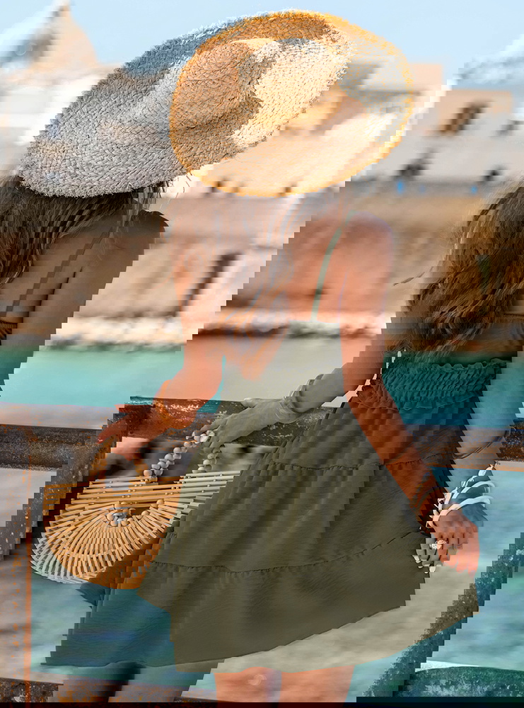 Rozkloszowana sukienka na ramiączkach Jauste - khaki to połączenie wygody i niewymuszonej elegancji. Wyróżnia się prostotą, która daje wiele możliwości stylizacyjnych. To model, który doskonale wpisuje się w ideę La Dolce Vita – czerpania radości z codzienności. Nada się zarówno na leniwe popołudnia, jak i spontaniczne wypady. Dzięki swojemu fasonowi podkreśla to, co kobiece, i dodaje lekkości każdemu lookowi. Jej kolor sprawia, że pasuje niemal do wszystkiego – od delikatnych pasteli po intensywne akcenty. To sukienka, w której po prostu dobrze się czujesz.