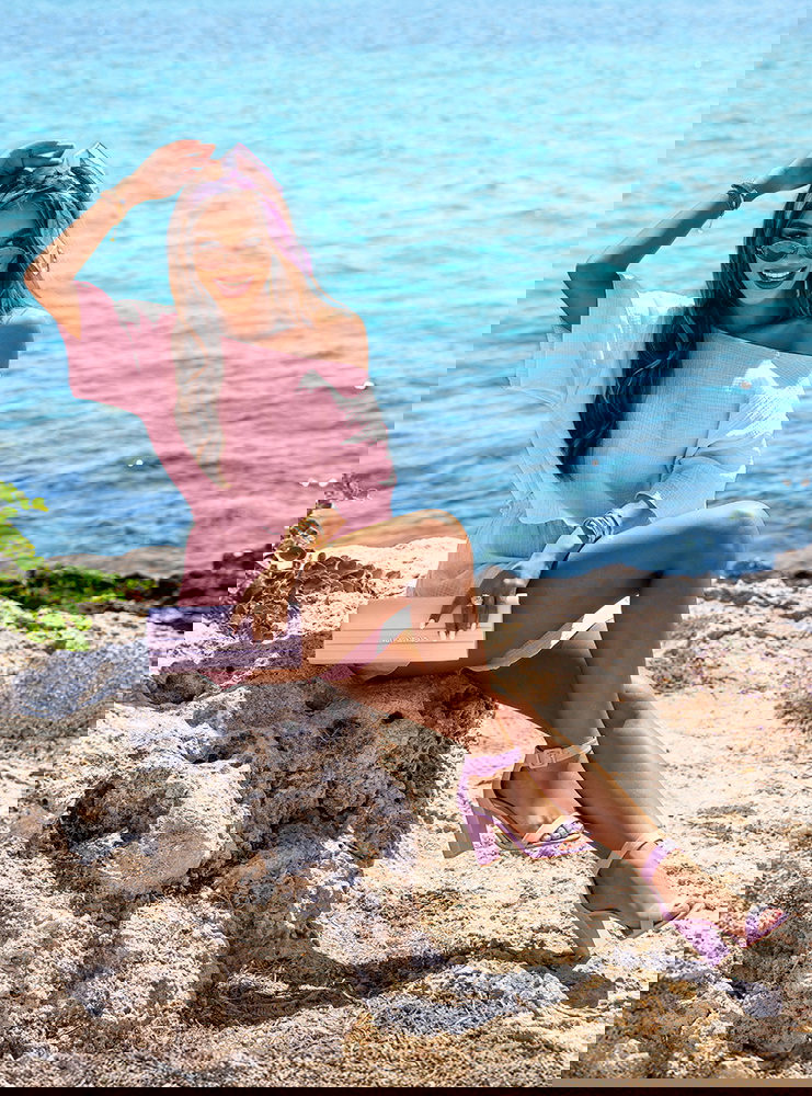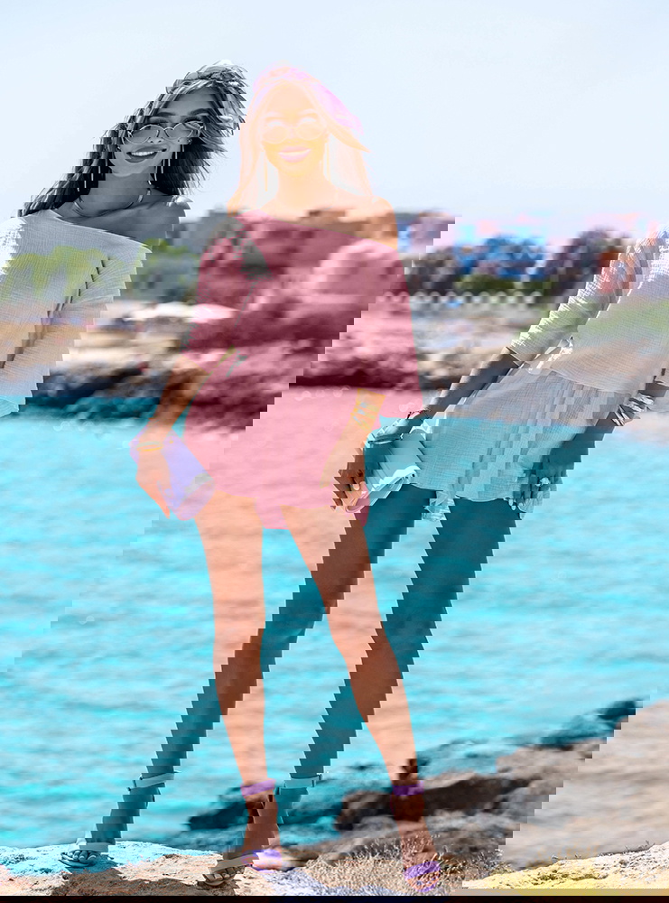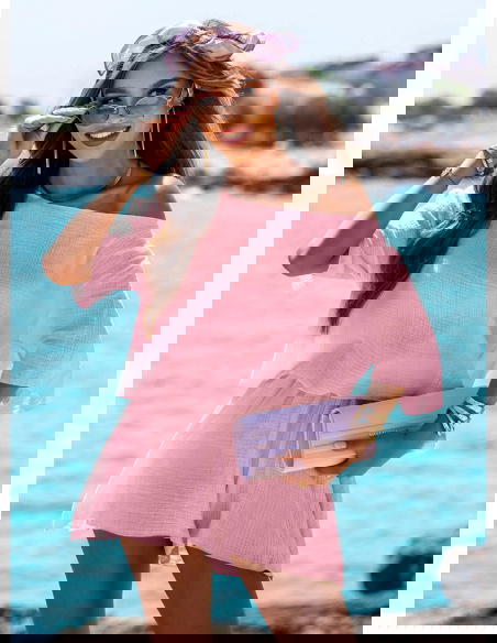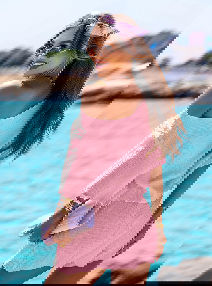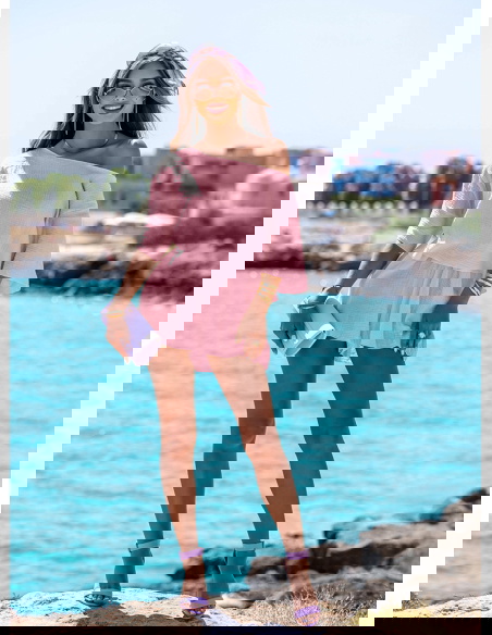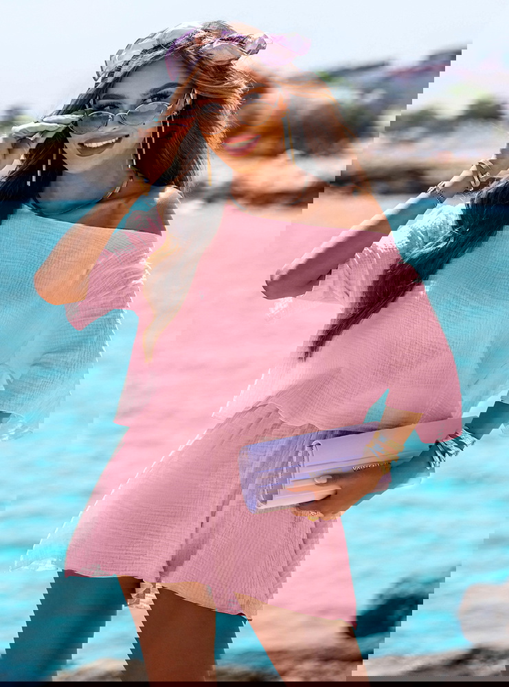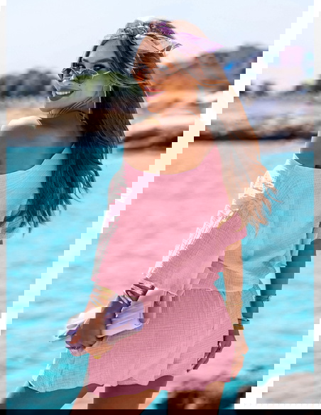 Pudrowy muślinowy komplet szorty i top Inesta to uosobienie lekkości, kobiecości i letniego uroku. To zestaw, który od razu przywodzi na myśl spacer po urokliwej, włoskiej uliczce lub poranne cappuccino w cieniu palm. Subtelny, pudrowy odcień rozświetla skórę i pięknie komponuje się ze złotem biżuterii oraz wakacyjną opalenizną. To komplet, który nie wymaga wysiłku – wystarczy założyć go raz, by poczuć się swobodnie i stylowo. Delikatny muślin miękko układa się na sylwetce, dodając wdzięku przy każdym ruchu. Góra z opadającym rękawem odsłania ramiona w zmysłowy, ale nienachalny sposób. Szorty z gumką w pasie są komfortowe i praktyczne – możesz je nosić przez cały dzień. To look idealny na wakacyjny luz z odrobiną klasy. Sprawdzi się zarówno w codziennych kadrach, jak i w tych, które trafiają na Instagram. I choć jest nieskomplikowany, ma w sobie coś, co trudno zignorować – to po prostu La Dolce Vita.