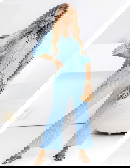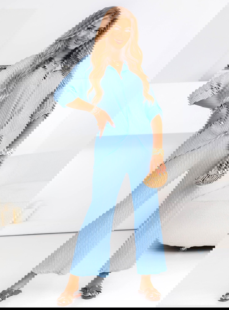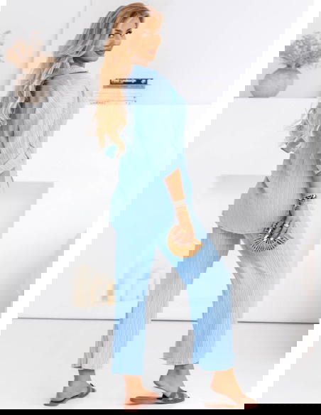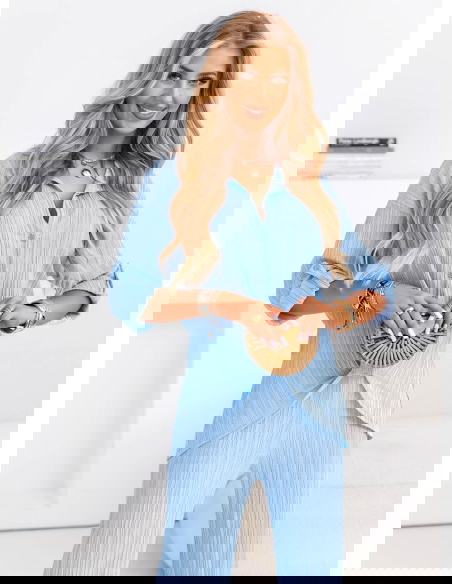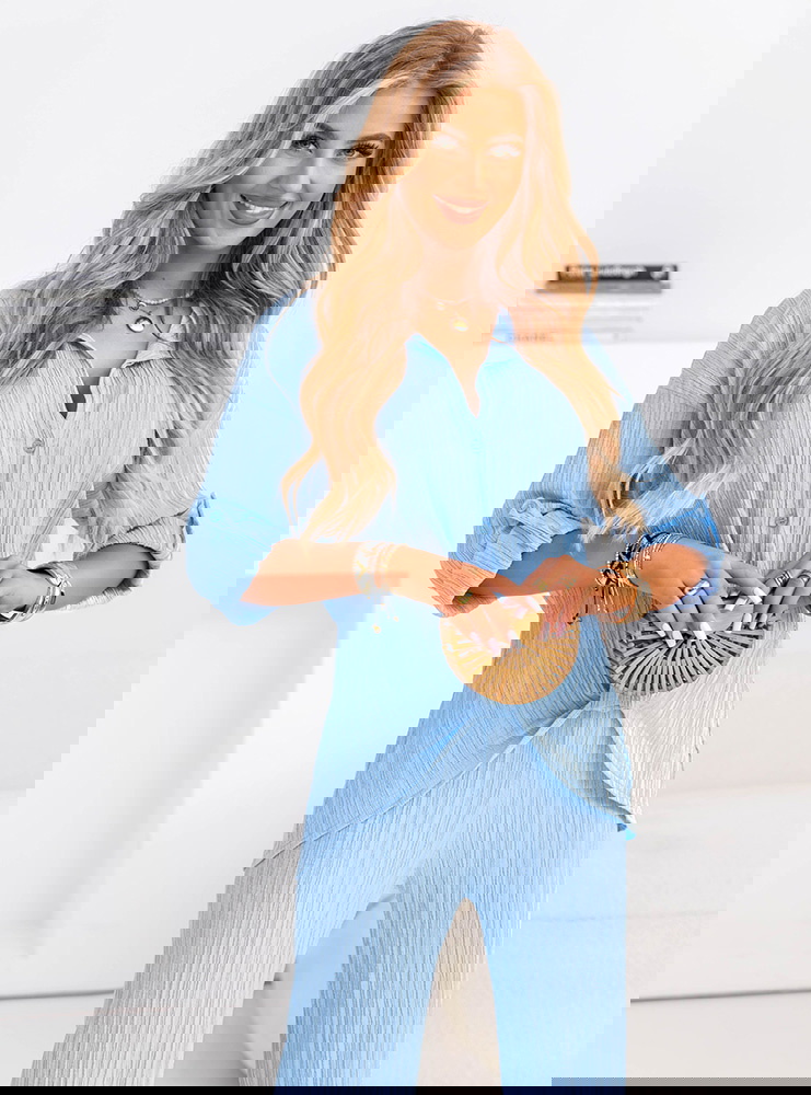 Błękitny komplet koszula zapinana na guziki i spodnie Preivaine