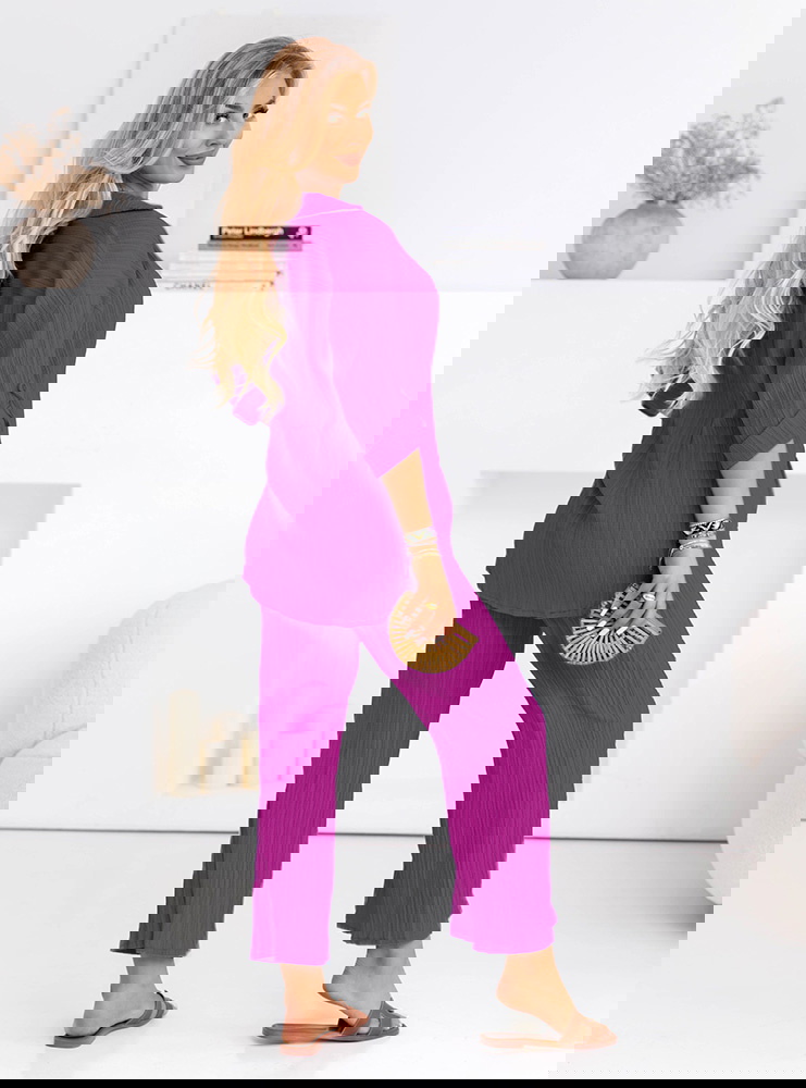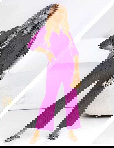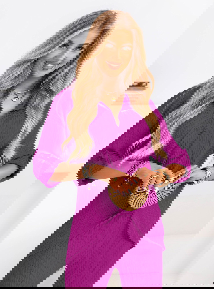 Komplet koszula zapinana na guziki i spodnie Preivaine - fuksja