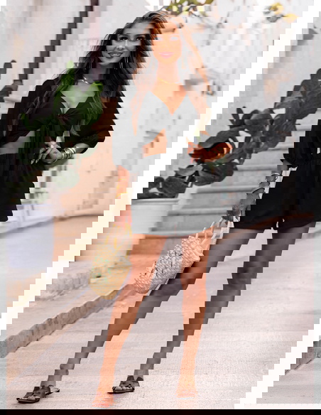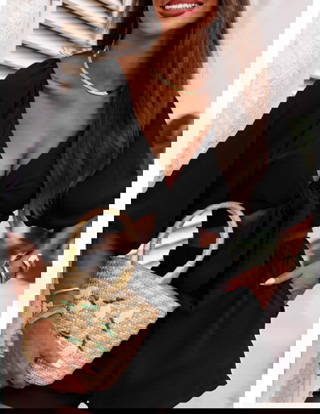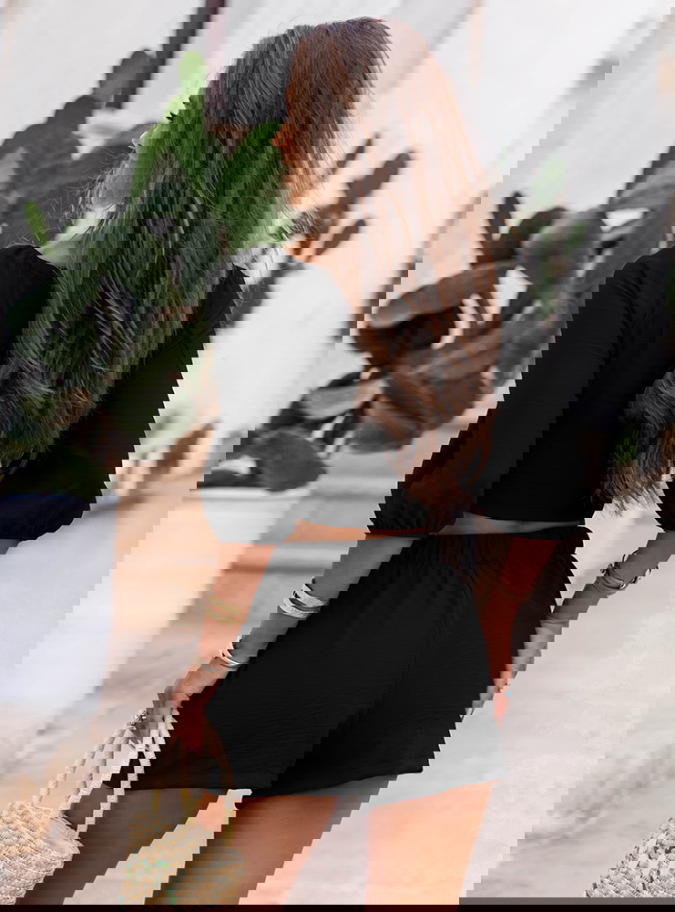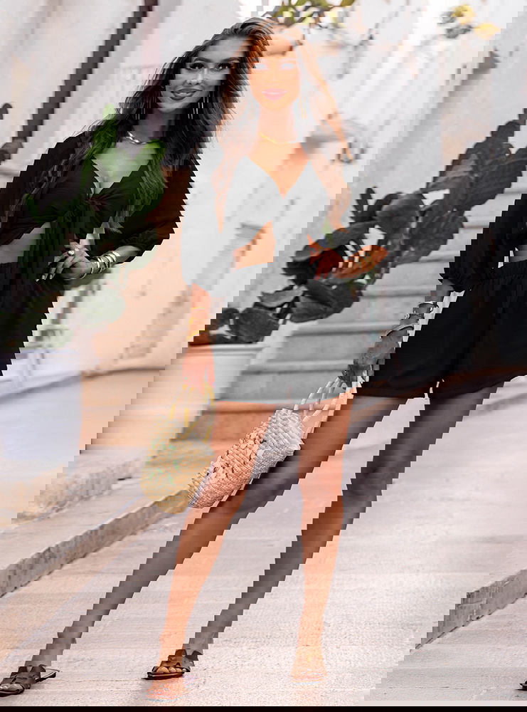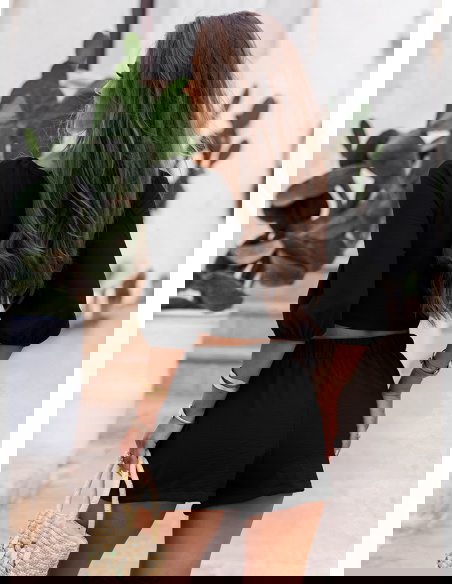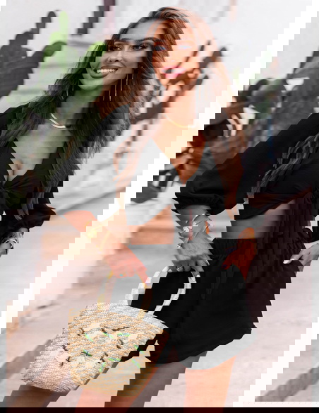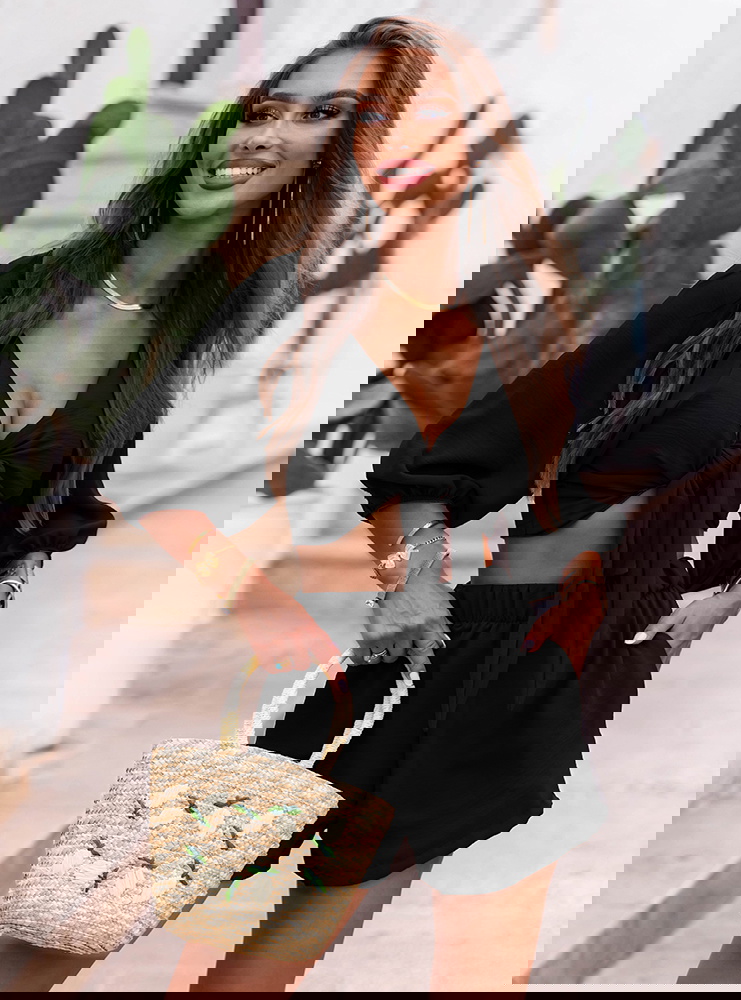 Czarny komplet top z bufiastymi rękawami i spodenki Erlis to kwintesencja letniego stylu i komfortu. Lekki, kobiecy, ale nieprzekombinowany – przyciąga uwagę detalami i krojem. To zestaw, który pozwoli Ci wyglądać stylowo bez wysiłku. Doskonale odnajduje się w klimacie La Dolce Vita – wśród słońca, cytrusów i beztroskich chwil. Jeśli szukasz stylizacji, która łączy swobodę z kobiecym akcentem – Erlis to trafiony wybór. Z łatwością wkomponujesz go w swoją wakacyjną garderobę.