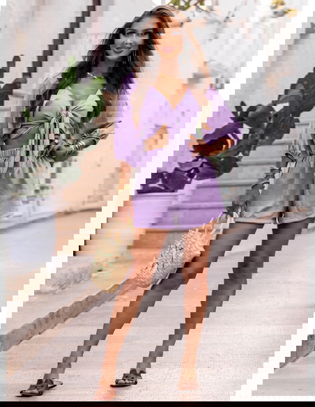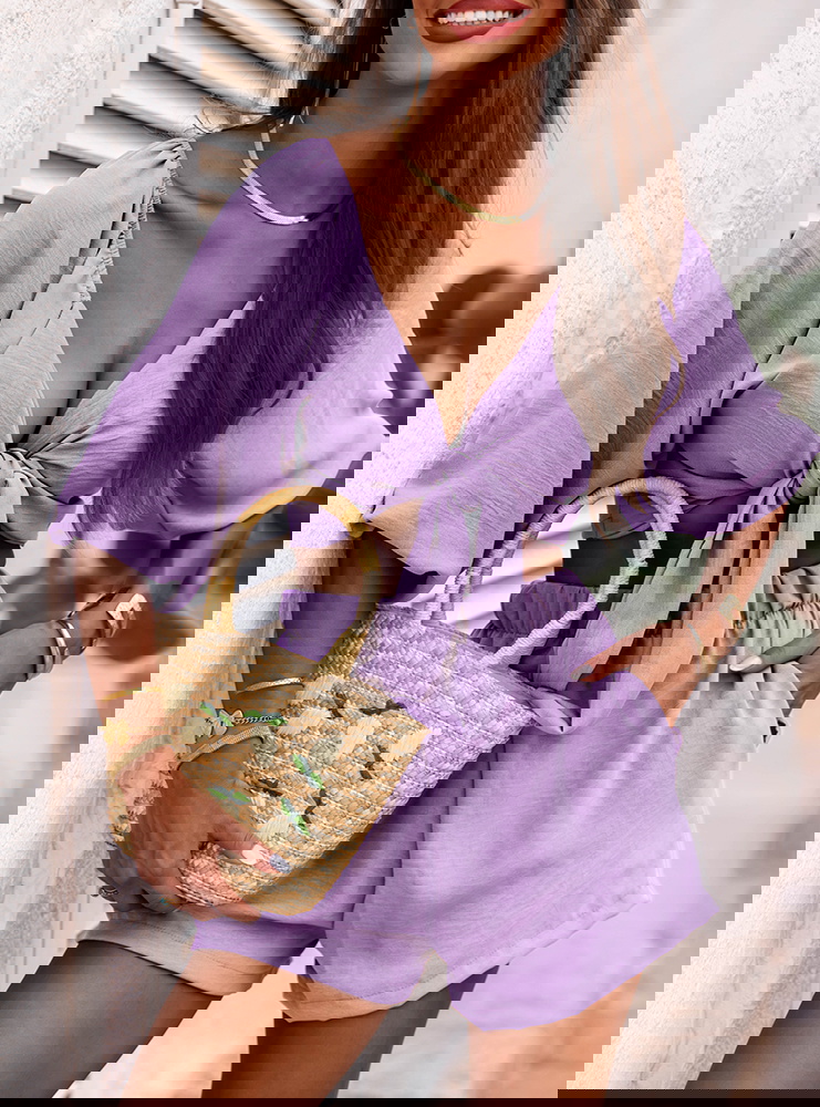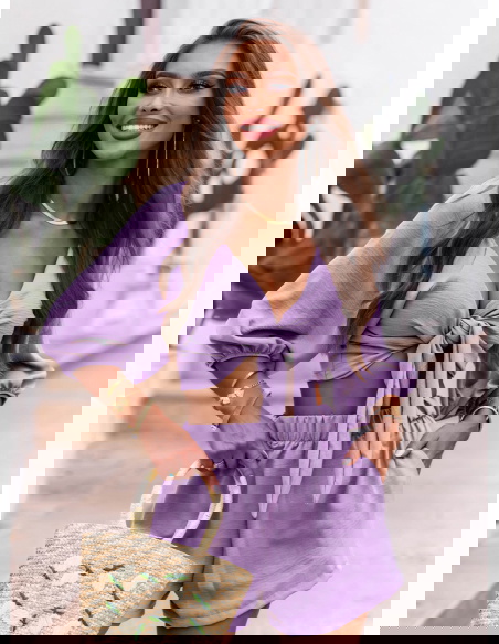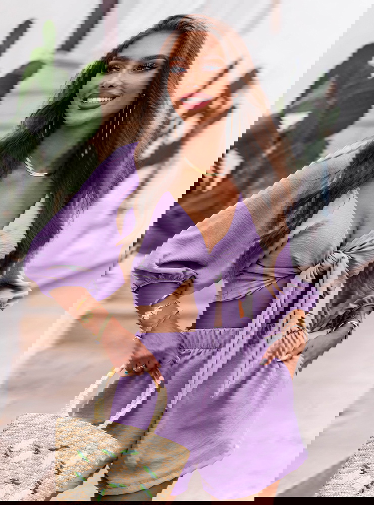 Liliowy komplet top z bufiastymi rękawami i spodenki Erlis to kwintesencja letniego stylu i komfortu. Lekki, kobiecy, ale nieprzekombinowany – przyciąga uwagę detalami i krojem. To zestaw, który pozwoli Ci wyglądać stylowo bez wysiłku. Doskonale odnajduje się w klimacie La Dolce Vita – wśród słońca, cytrusów i beztroskich chwil. Jeśli szukasz stylizacji, która łączy swobodę z kobiecym akcentem – Erlis to trafiony wybór. Z łatwością wkomponujesz go w swoją wakacyjną garderobę.