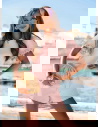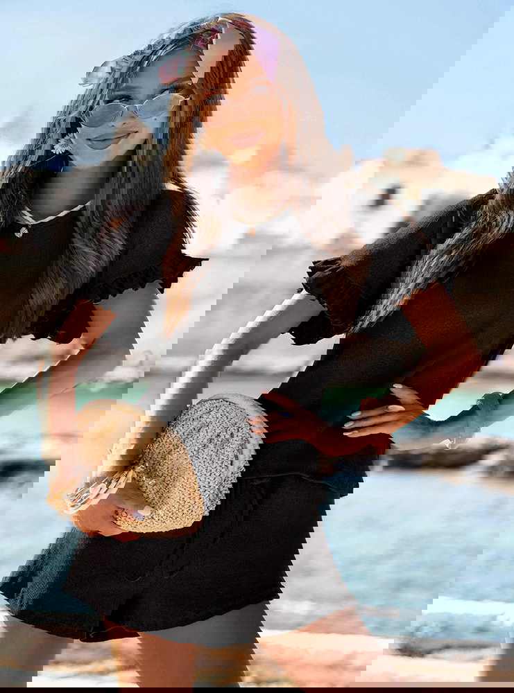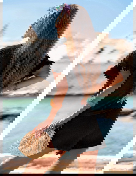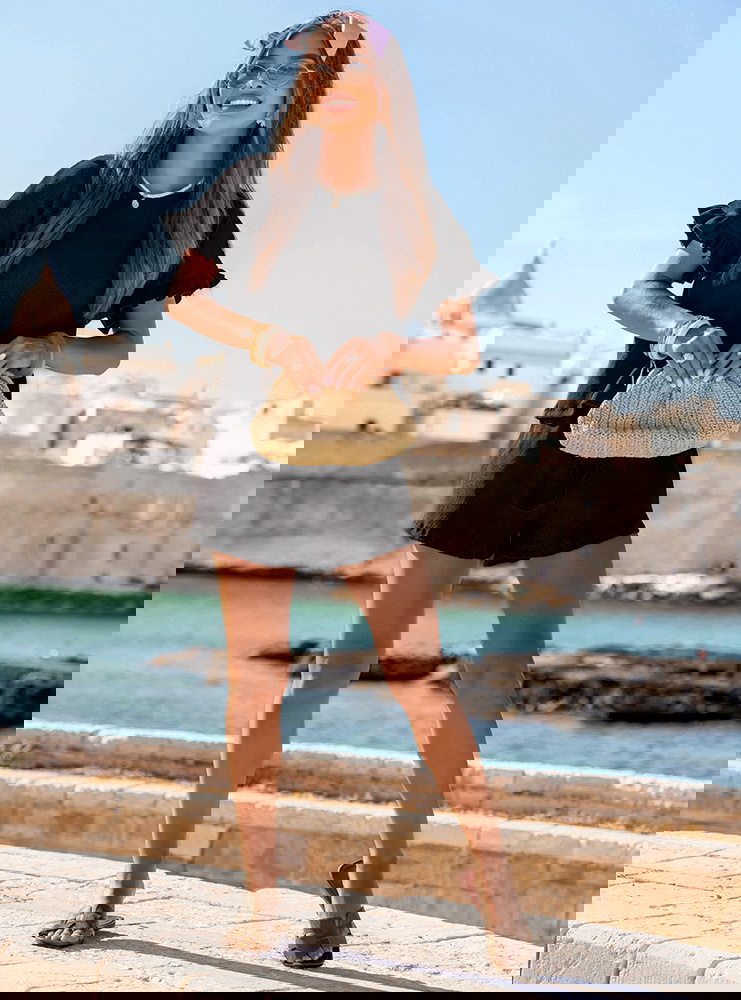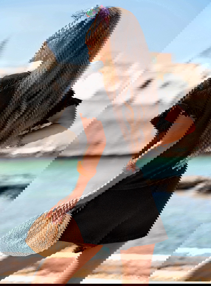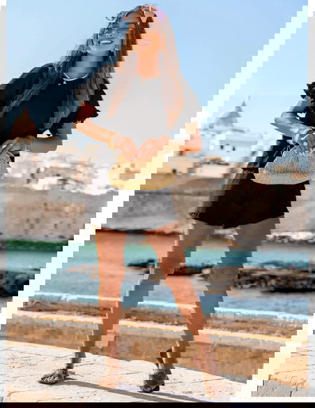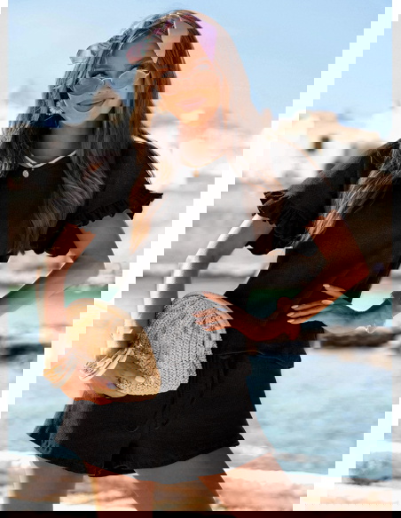 Czarny prążkowany komplet bluzka falbowana i szorty Tillia to połączenie wygody i kobiecego wdzięku w najbardziej wakacyjnym wydaniu. Luźna bluzka i lekkie szorty tworzą stylizację, która sprawdza się w każdej letniej sytuacji. Falbanki dodają całości romantycznego charakteru, a pastelowy kolor ożywia i rozświetla look. Doskonale wpisuje się w klimat kolekcji La Dolce Vita – pełnej światła, swobody i radości z chwili. Ten komplet pozwala czuć się swobodnie, ale i wyjątkowo. Właśnie tak powinna wyglądać moda na lato – lekka, niewymuszona, stylowa.