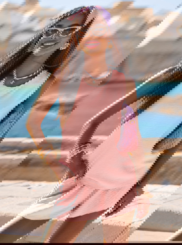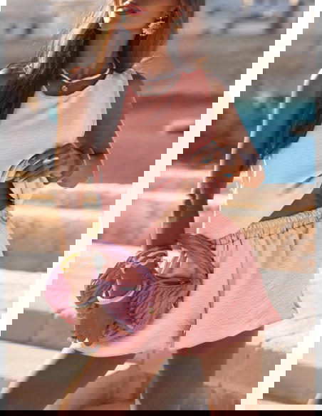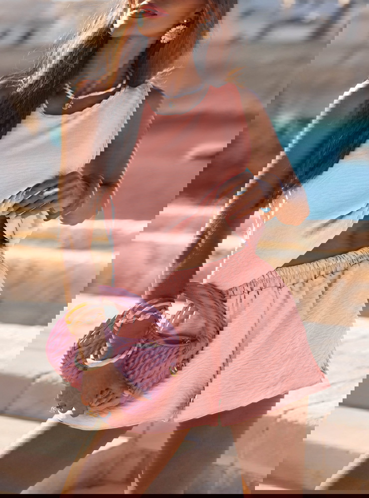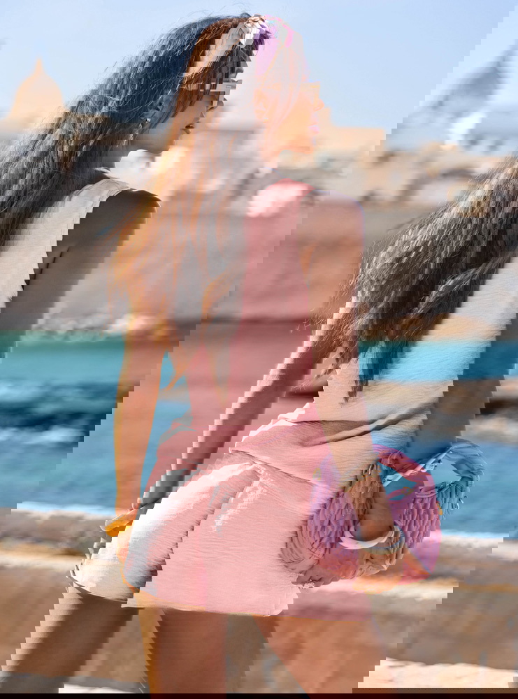 Pudrowy komplet bluzka i spodenki Tarisana to esencja letniego minimalizmu z nutą ponadczasowej elegancji. Niezależnie od okazji – Tarisana będzie Twoim niezawodnym wyborem. Kolekcja La Dolce Vita to celebracja prostych przyjemności – i dokładnie taka jest ta stylizacja. Wystarczy dodać uśmiech, okulary przeciwsłoneczne i gotowe!