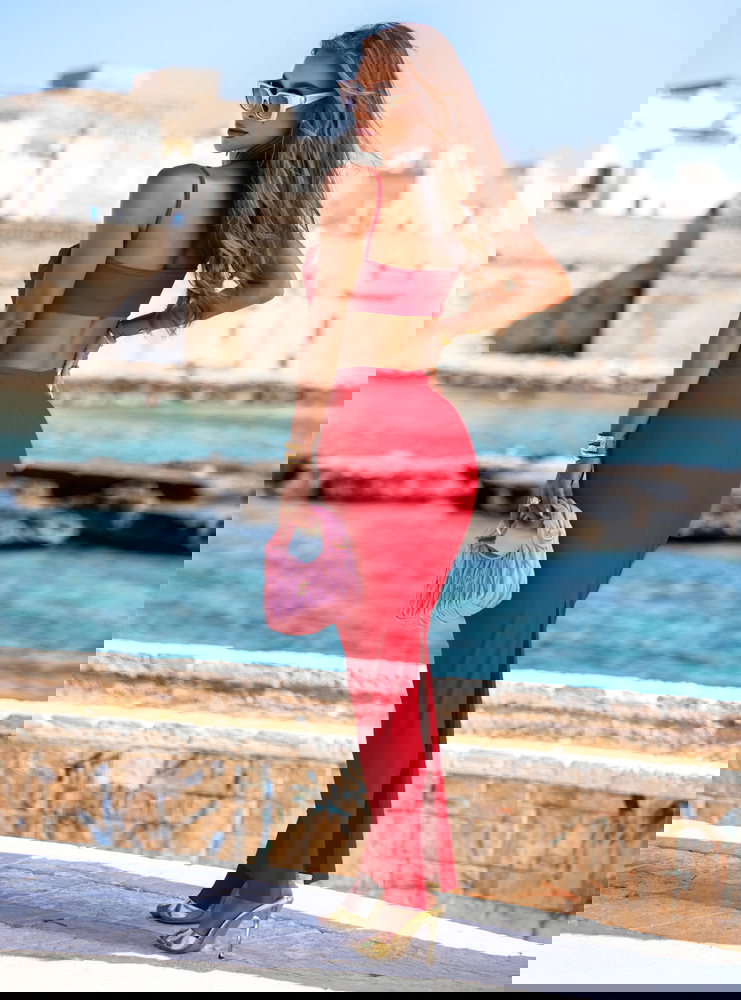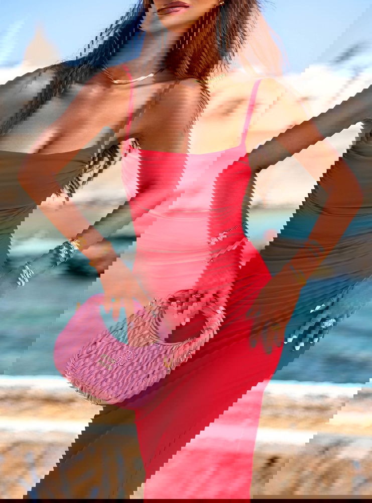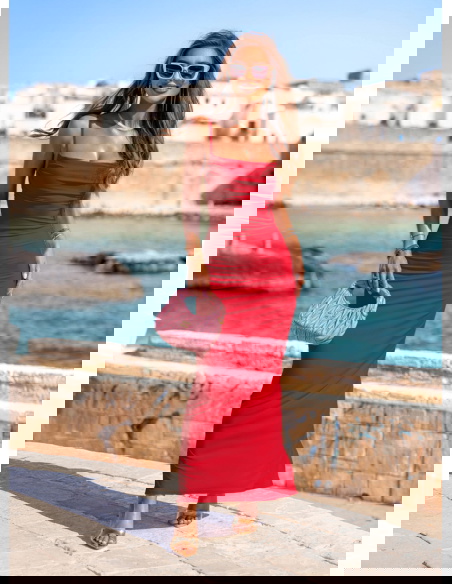 Malinowa długa sukienka na ramiączkach z rozcięciem Julina to kwintesencja kobiecości w wakacyjnym wydaniu. Jej minimalistyczny krój daje ogromne możliwości stylizacji. Dzięki niej stworzysz look rodem z włoskich uliczek – nonszalancki, ale pełen uroku. Czerwień dodaje energii i pewności siebie, niezależnie od okoliczności. To model, który pokocha każda kobieta szukająca balansu między wygodą a szykiem.