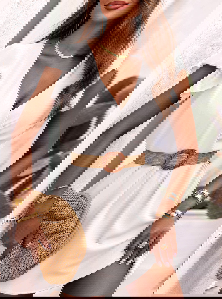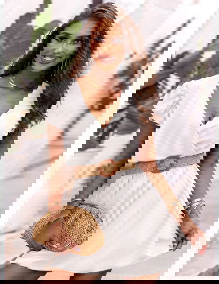 Biała sukienka z przekładanym dekoltem Soave to kwintesencja włoskiego minimalizmu i kobiecego uroku. Jej jasny, słoneczny kolor i lekki materiał tworzą stylizację, w której czujesz się swobodnie i pewnie. To sukienka, która pasuje do sandałków, espadryli i rattanowej torebki.