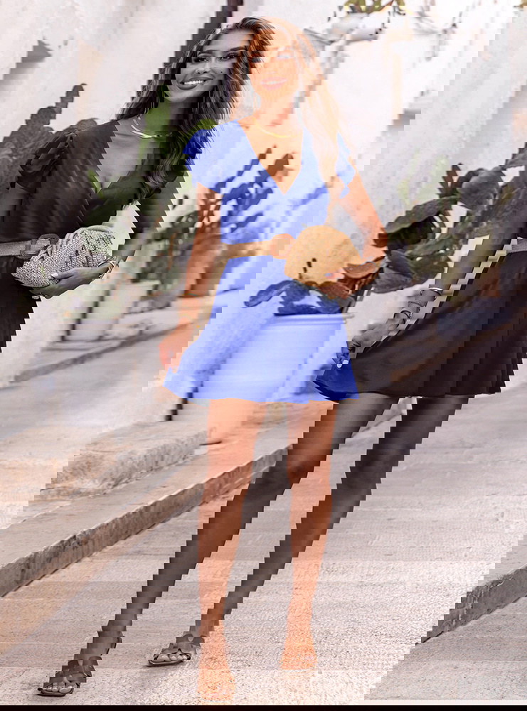 Chabrowa sukienka z przekładanym dekoltem Soave to kwintesencja włoskiego minimalizmu i kobiecego uroku. Jej jasny, słoneczny kolor i lekki materiał tworzą stylizację, w której czujesz się swobodnie i pewnie. To sukienka, która pasuje do sandałków, espadryli i rattanowej torebki.
