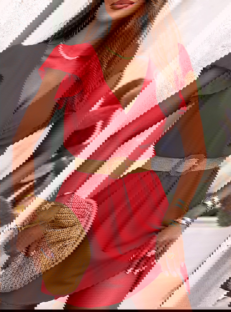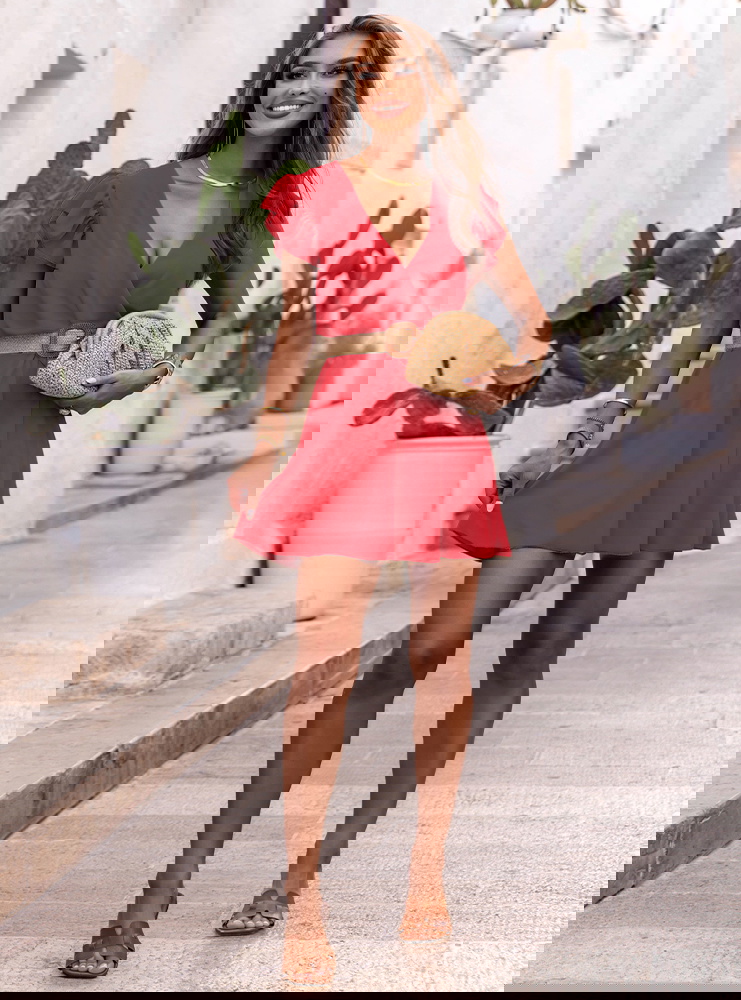Malinowa sukienka z przekładanym dekoltem Soave to kwintesencja włoskiego minimalizmu i kobiecego uroku. Jej jasny, słoneczny kolor i lekki materiał tworzą stylizację, w której czujesz się swobodnie i pewnie. To sukienka na uśmiech i promienie słońca. Z nią w garderobie wakacje zaczynają się szybciej.