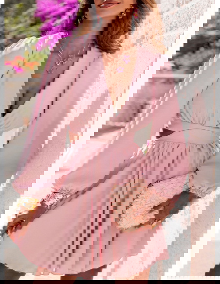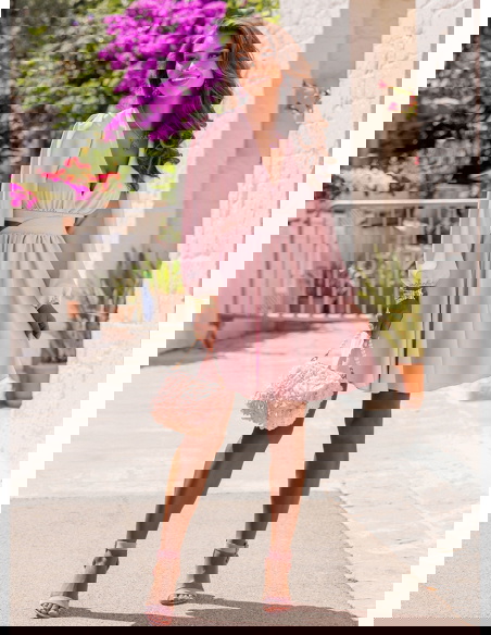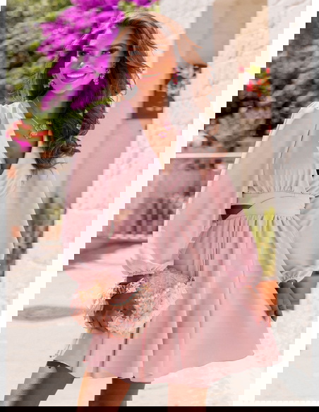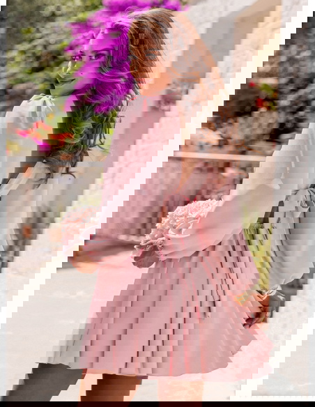 Pudrowa sukienka rozkloszowana z wycięciem Gardenia to sukienka, która łączy w sobie romantyzm, kobiecość i letnią lekkość. To stylizacja, którą założysz z przyjemnością – i która zapadnie w pamięć innym. Gardenia jest jak kwiat – subtelna, ale przyciągająca spojrzenia. Idealna do walizki na letni wyjazd, ale też jako kreacja na szczególne okazje. W niej każda kobieta rozkwita.
