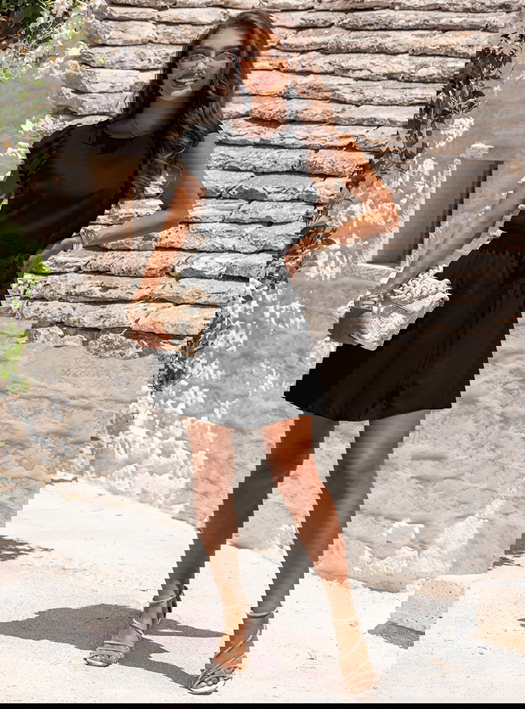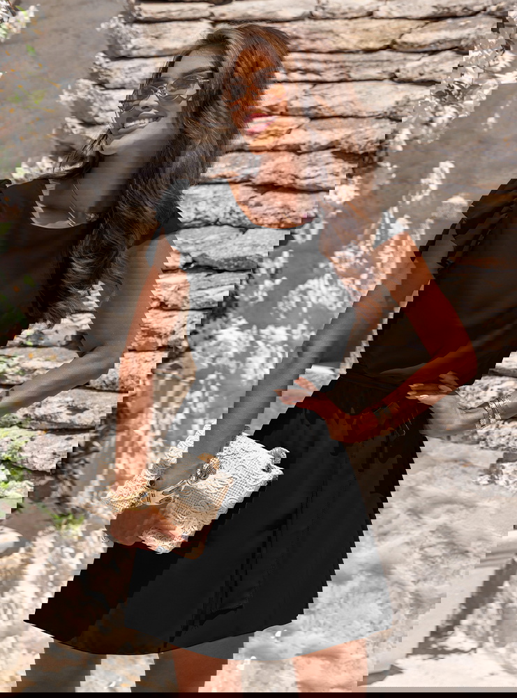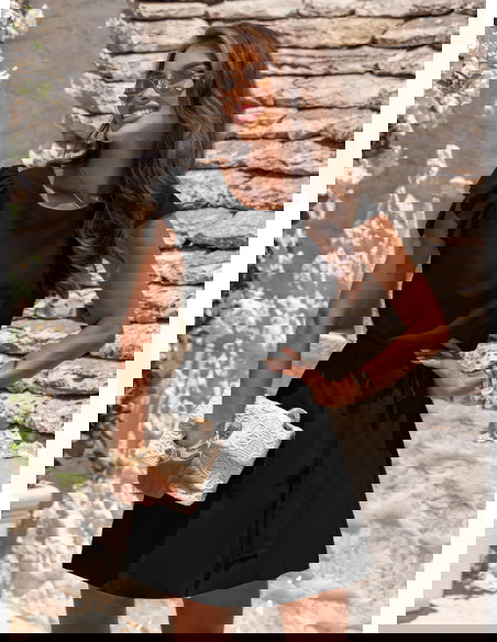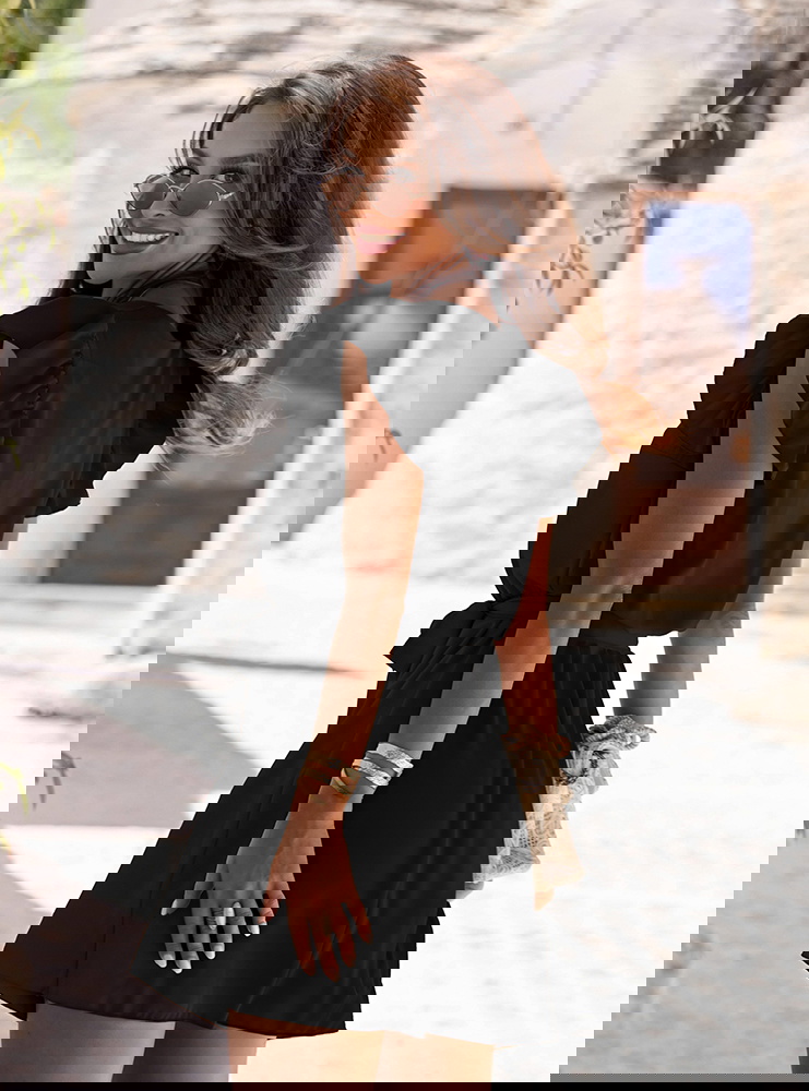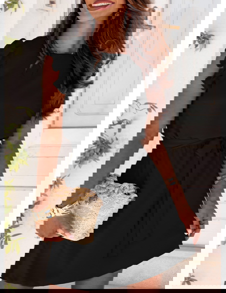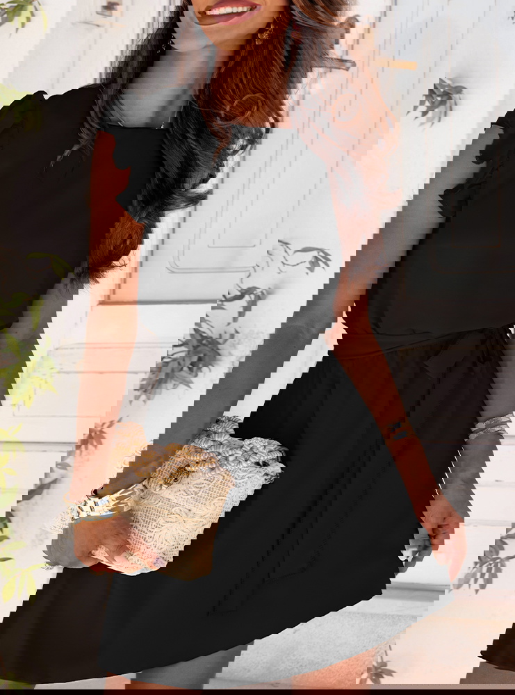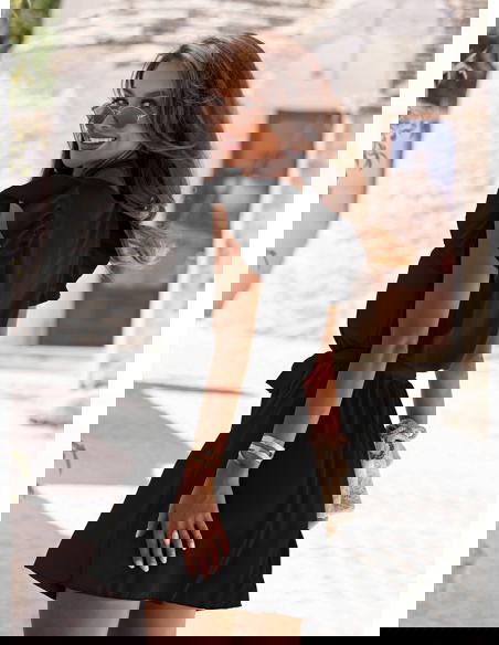 Czarna sukienka z wiązaniem w talii Fiamma to lekka propozycja, która idealnie wpisuje się w letnie upały. Ten model z wiązaniem w talii pięknie podkreśla sylwetkę, dodając lekkości każdej stylizacji. Subtelne falbanki przy ramionach wprowadzają kobiecy akcent i subtelnie podkreślają linię ramion. Model Fiamma ma dopasowany krój w talii, podkreślany wiązaniem. Rozkloszowany dół dodaje zwiewności i lekkości. Krótki rękawek z subtelną falbanką podkreśla kobiecą linię ramion. Prosty dekolt okrągły sprawia, że sukienka jest łatwa w noszeniu i pasuje do różnych dodatków. Idealna na lato – łączy w sobie styl i komfort.