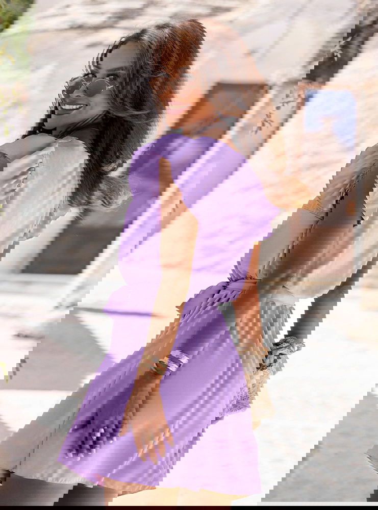 Liliowa sukienka z wiązaniem w talii Fiamma must-have na lato. Wiązanie w talii pozwala idealnie dopasować model do sylwetki. Z powodzeniem założysz ją na wakacyjne wakacje i zwiedzanie nadmorskich kurortów. Doskonale odnajdzie się podczas spacerów po miejskich deptakach i weekendowych wypadów. Lekką formę można przełamać eleganckimi sandałkami, dzięki czemu z łatwością stworzysz wieczorowy look.