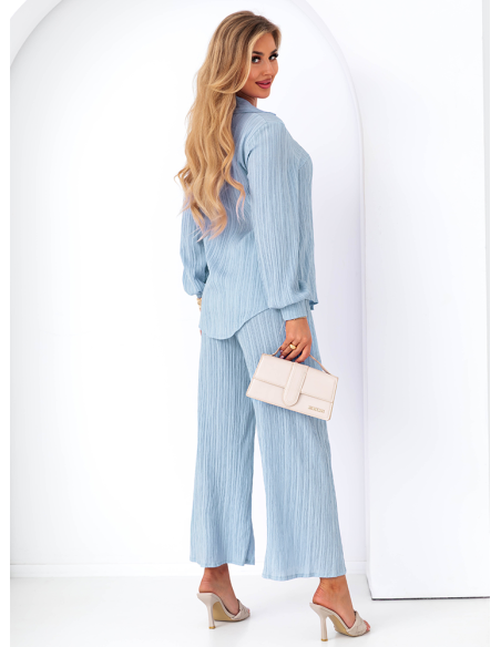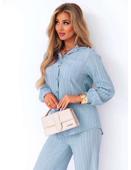 Błękitny komplet koszula zapinana na guziki i spodnie Oracla