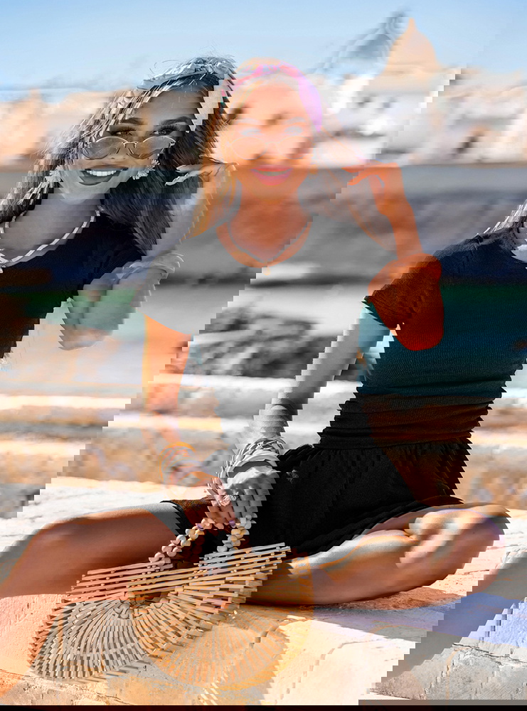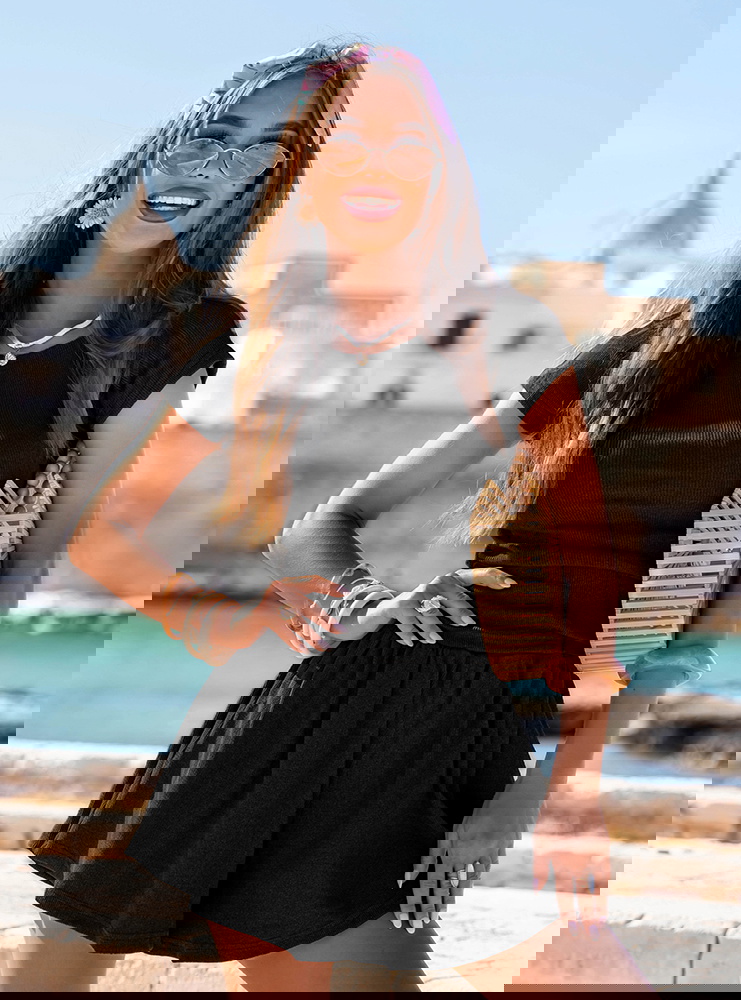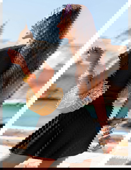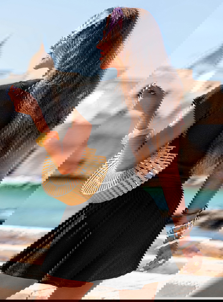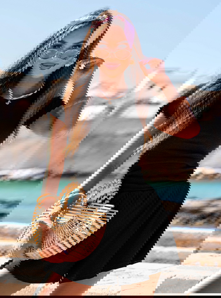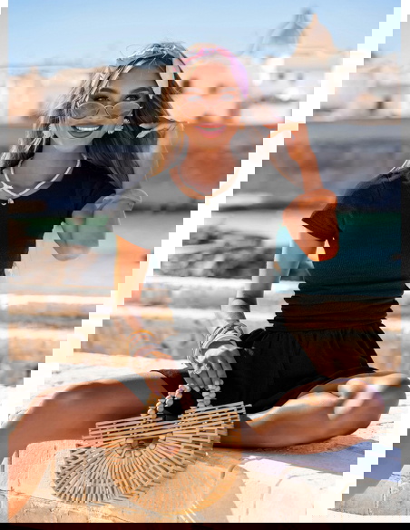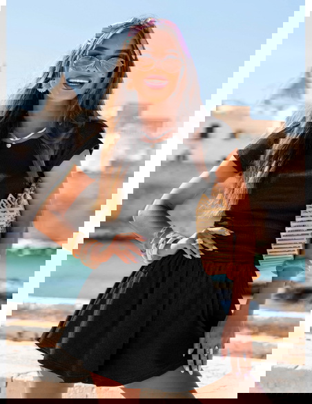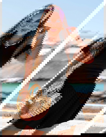 Czarny komplet prążkowany bluzka i spodenki jak spódnica Nivia to idealna odpowiedź na potrzeby letnich dni. Doskonale pasuje do filozofii La Dolce Vita – ciesz się latem, wyglądając przy tym zjawiskowo. Nivia nie wymaga skomplikowanych dodatków – wystarczy kapelusz, okulary i już masz gotowy look. To komplet, który można stylizować na wiele sposobów, zawsze osiągając efekt swobodnej elegancji. Jeśli szukasz czegoś, co podkreśli Twoją osobowość, a jednocześnie da Ci komfort – Nivia będzie strzałem w dziesiątkę.