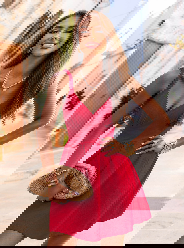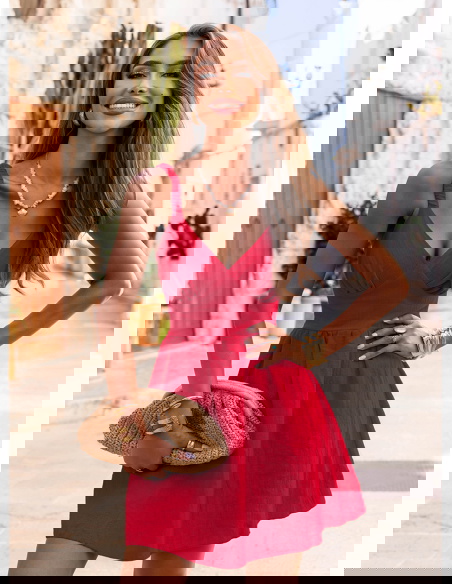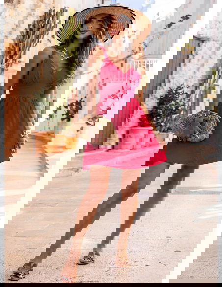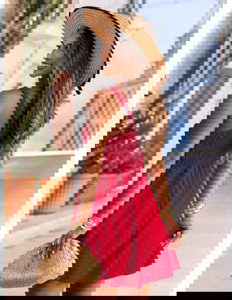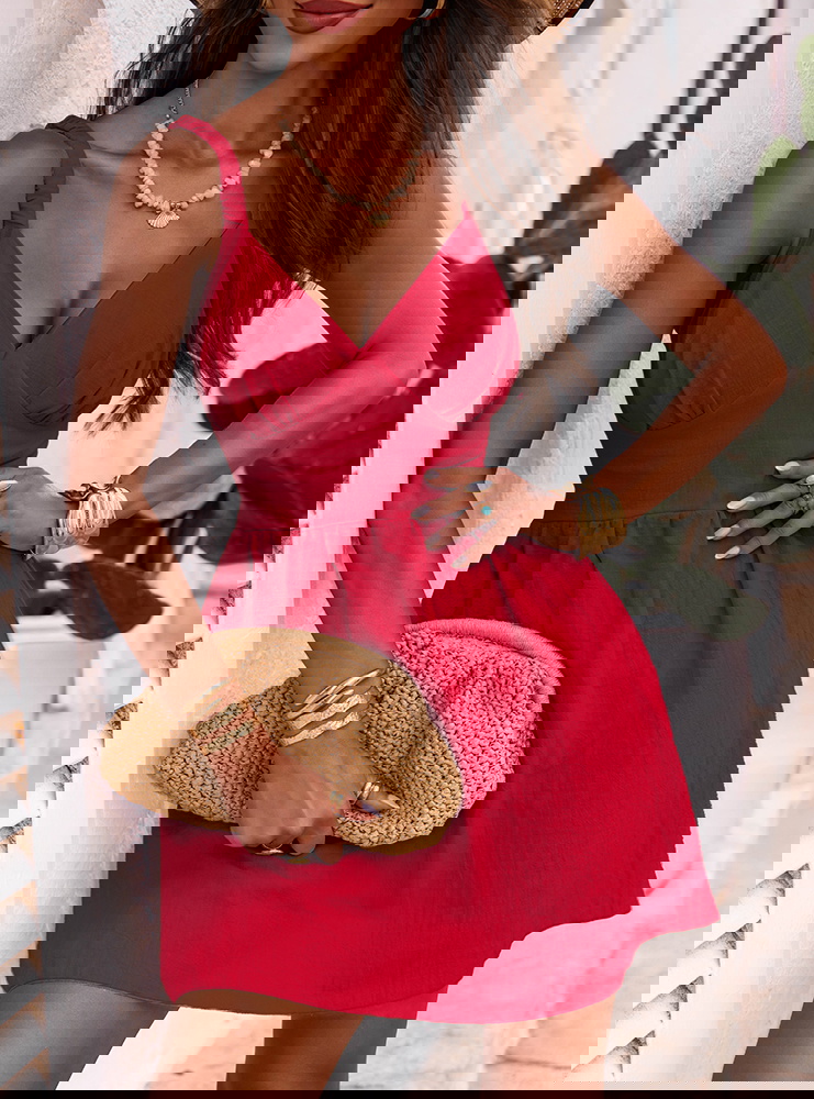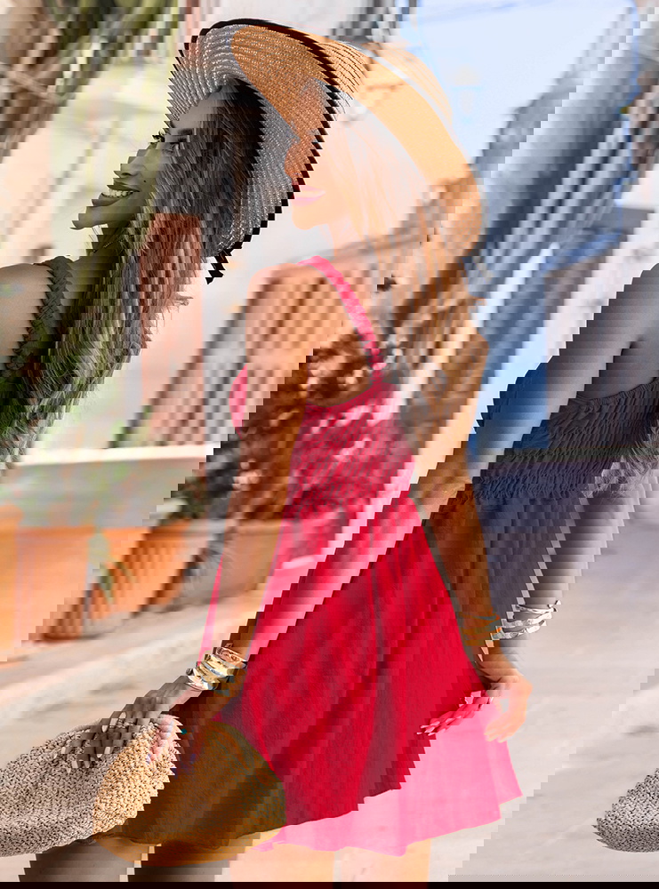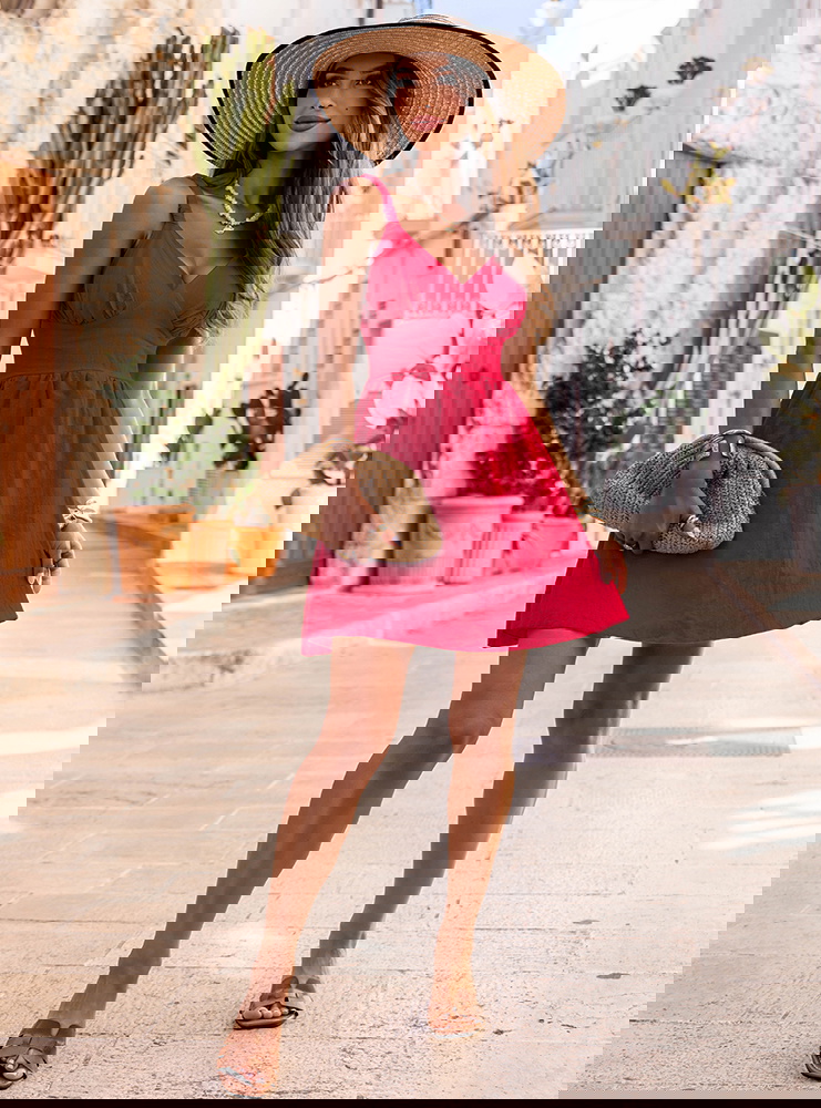 Malinowa rozkloszowana sukienka na ramiączkach Yelian to niezastąpiony element letniej garderoby. Jej prosty, ale dopracowany krój daje maksimum swobody i kobiecości. Regulowane ramiączka i elastyczny tył gwarantują komfort przez cały dzień. To model, który można nosić zarówno na luzie, jak i w bardziej eleganckim wydaniu. Świetnie podkreśla atuty figury, jednocześnie pozostając delikatną i subtelną.