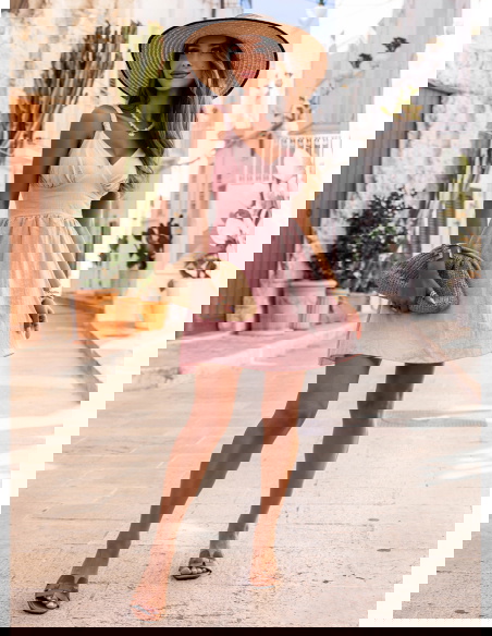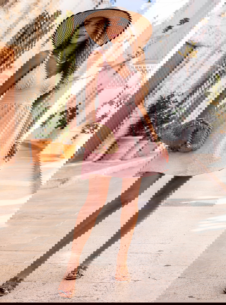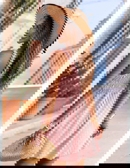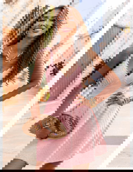Pudrowa rozkloszowana sukienka na ramiączkach Yelian to niezastąpiony element letniej garderoby. Jej prosty, ale dopracowany krój daje maksimum swobody i kobiecości. Regulowane ramiączka i elastyczny tył gwarantują komfort przez cały dzień. To model, który można nosić zarówno na luzie, jak i w bardziej eleganckim wydaniu. Świetnie podkreśla atuty figury, jednocześnie pozostając delikatną i subtelną.