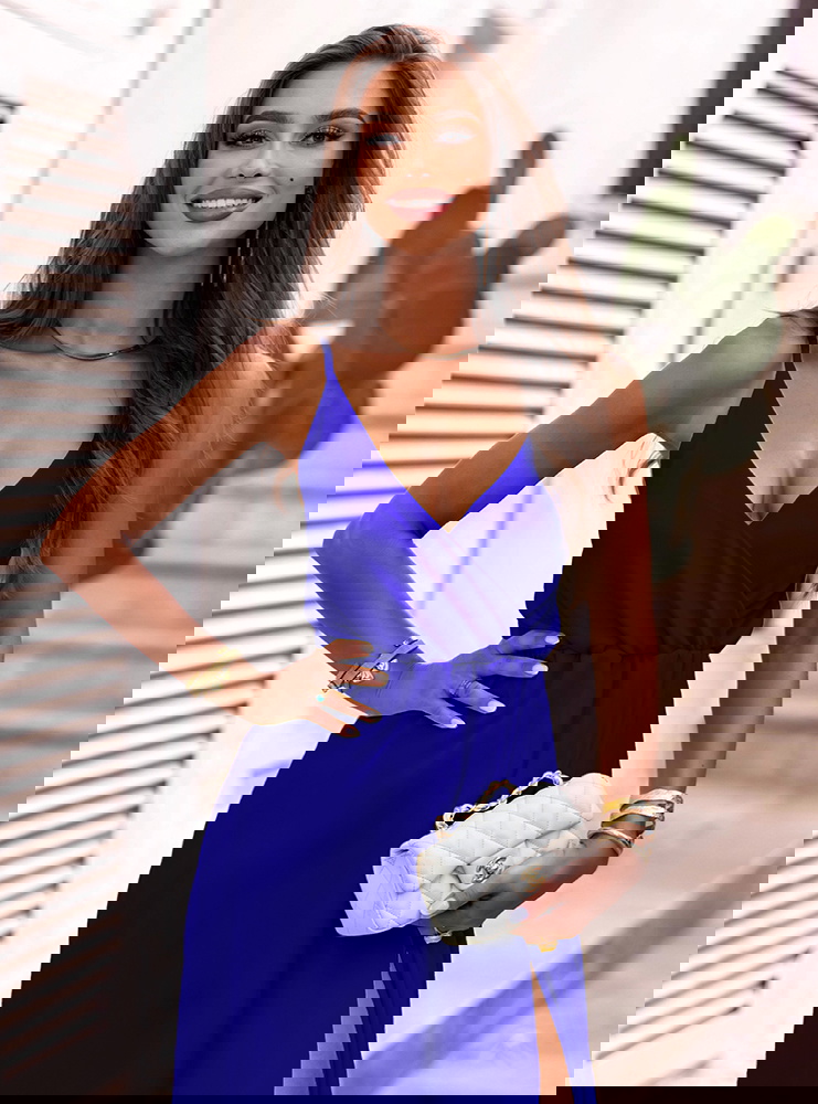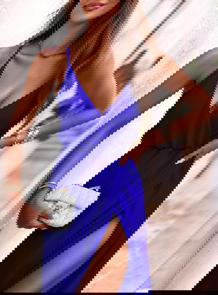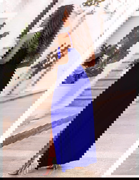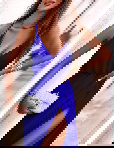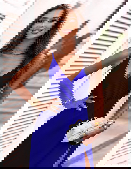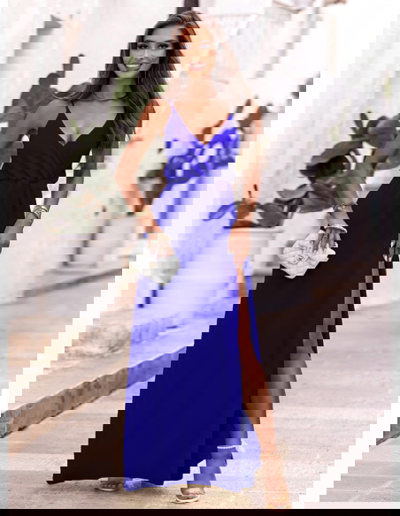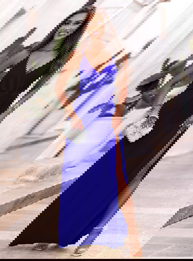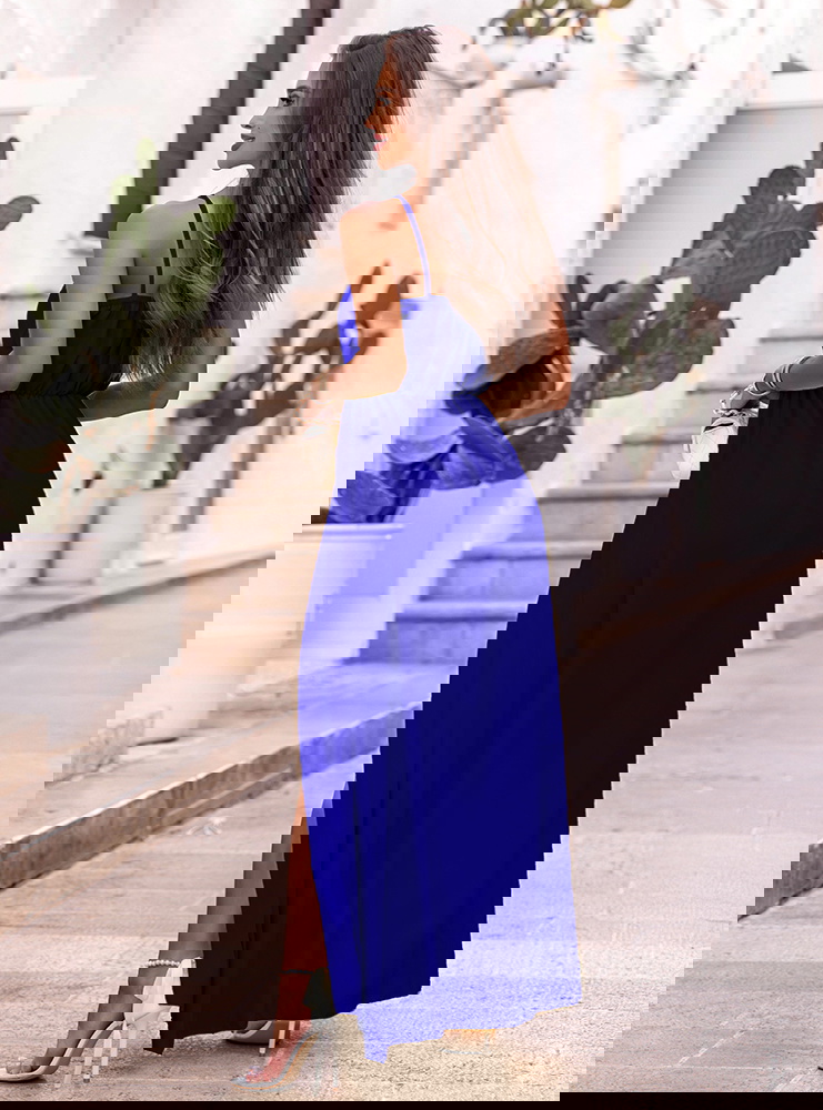 Chabrowa długa sukienka na ramiączkach z rozcięciem Irelia to esencja kobiecej zmysłowości i elegancji w nowoczesnym wydaniu. Jej intensywny chabrowy kolor przyciąga spojrzenia i podkreśla urodę, sprawiając, że trudno przejść obok niej obojętnie. To model, który w prosty sposób potrafi dodać klasy każdej stylizacji, a jednocześnie zapewnia lekkość i swobodę noszenia. Sukienka została zaprojektowana z myślą o kobietach, które lubią czuć się pewnie i wyjątkowo – niezależnie od okazji. Cienkie ramiączka i kopertowy dekolt pięknie eksponują ramiona i szyję, dodając sylwetce subtelnej finezji. Długość maxi oraz rozcięcie na nodze nadają całości eleganckiego, ale i lekko zmysłowego charakteru. Sukienka świetnie dopasowuje się do sylwetki, podkreślając kobiece kształty, ale jednocześnie nie ograniczając ruchów. To idealna baza do wieczorowych stylizacji – wystarczy dodać ulubione szpilki, torebkę i delikatną biżuterię. Ta sukienka łączy w sobie wszystko, czego szukasz w letnim outficie – styl, lekkość i wyrazistość.