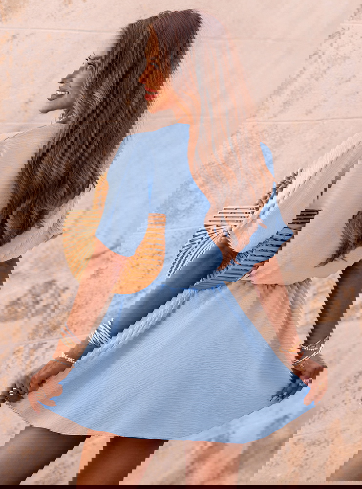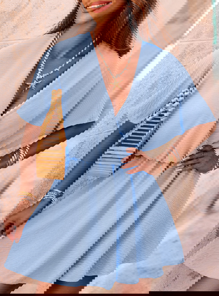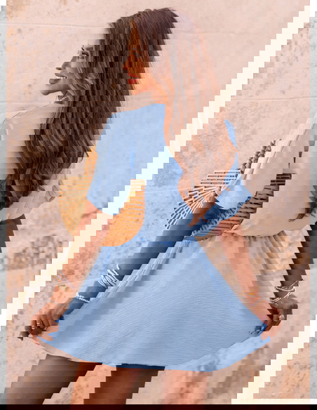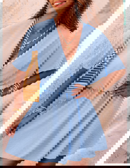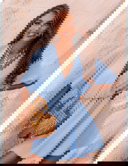 Błękitny kombinezon jak sukienka z przekładanym dekoltem Violleta