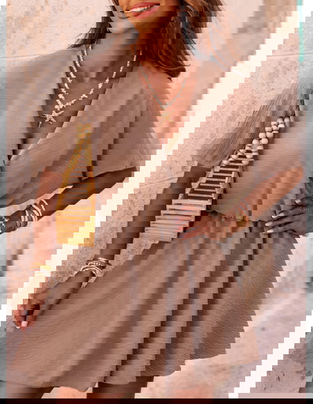 Kombinezon jak sukienka z przekładanym dekoltem Violleta - mocha mousse