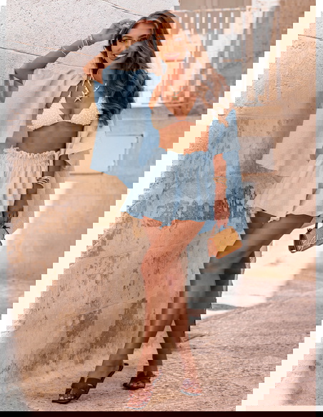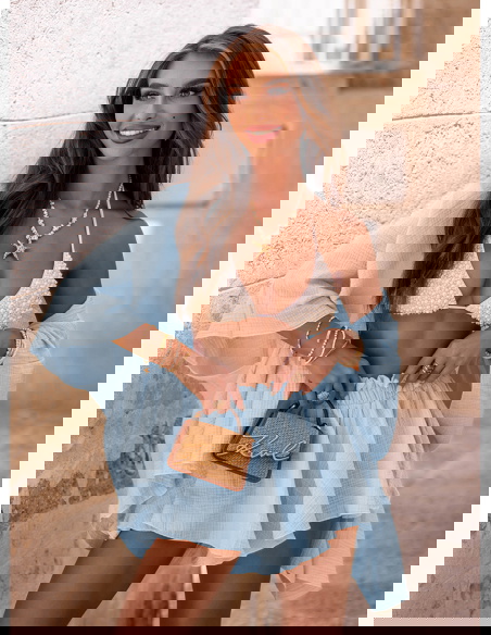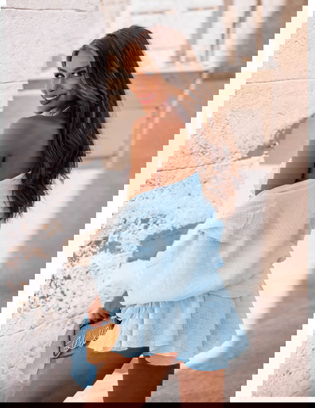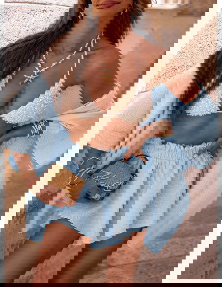 Błękitny komplet narzutka z wiązaniem i spodenki Elisabetta