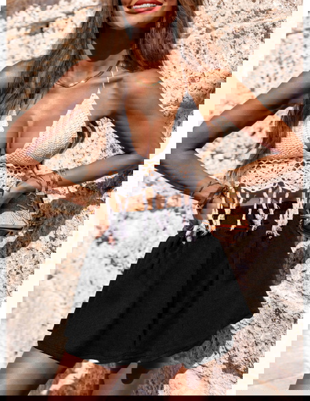 Czarne prążkowane spodenki z gumką w pasie Aretusa to must-have w garderobie każdej kobiety ceniącej wygodę i styl. Prosty krój spotyka się tutaj z wyjątkową lekkością formy, dzięki czemu z łatwością dopasujesz je do wielu letnich stylizacji. Czarny kolor zapewnia ponadczasową elegancję i swobodę w łączeniu z innymi elementami garderoby. Gumka w pasie dodaje komfortu, a jednocześnie subtelnie podkreśla talię. Te spodenki sprawdzą się zarówno jako baza codziennych outfitów, jak i ciekawy akcent w bardziej efektownym looku. Ich dziewczęcy, lekko rozkloszowany fason nadaje sylwetce lekkości i wdzięku. Długość mini optycznie wydłuża nogi i pięknie eksponuje opaleniznę. Świetnie wyglądają zarówno z prostym topem, jak i efektowną górą. To model, po który chętnie sięgniesz wiele razy – niezależnie od okazji. Te spodenki to połączenie swobody i stylu, którego szukasz w letniej garderobie.
