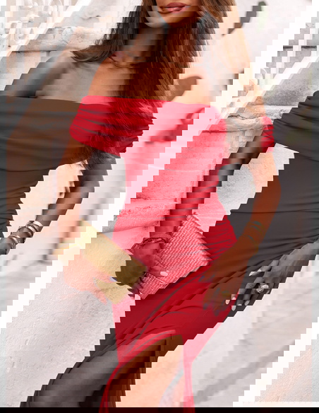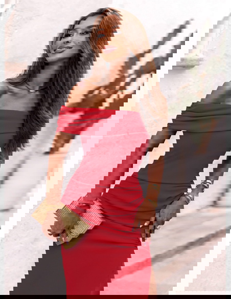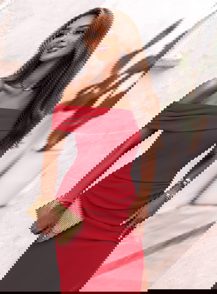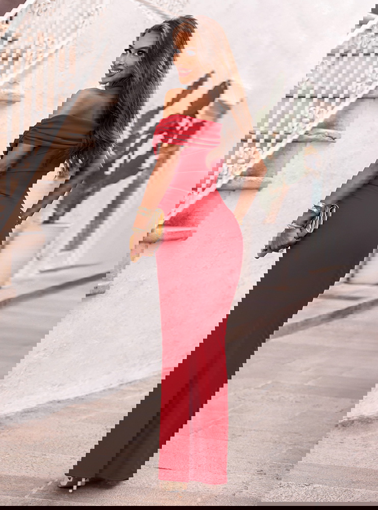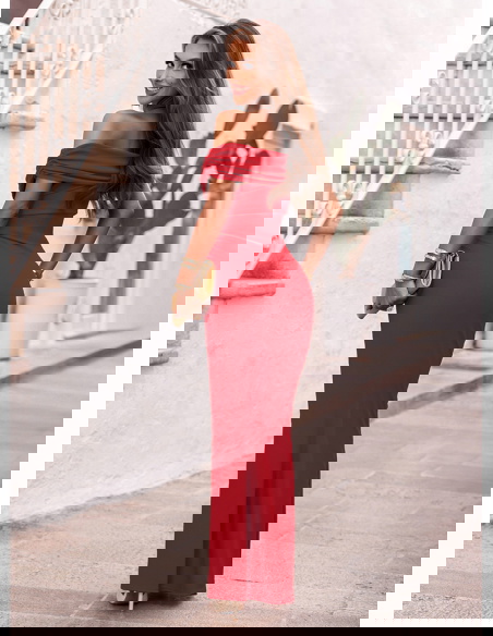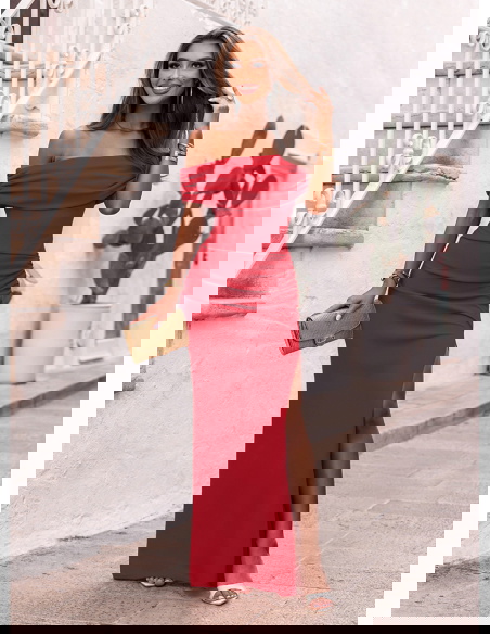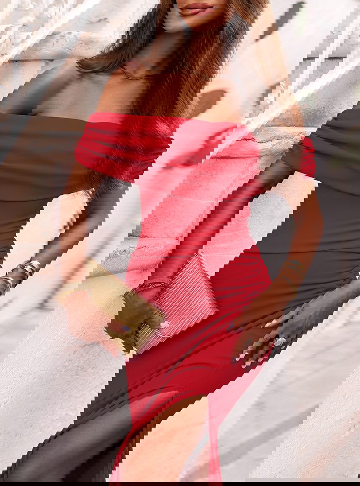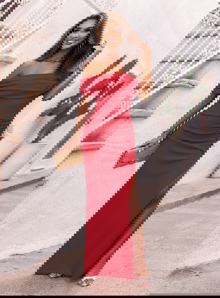 Malinowa długa dopasowana sukienka z rozcięciem Ermione to propozycja, obok której nie da się przejść obojętnie. To model, który łączy klasykę z odważnym, kobiecym charakterem. Kolor przyciąga wzrok, a krój wydobywa z sylwetki to, co najlepsze. Dopasowany fason pięknie podkreśla figurę i wysmukla optycznie całą sylwetkę. Dekolt typu hiszpanka delikatnie odsłania ramiona, dodając stylizacji subtelnego uroku. Długie linie sukienki kontrastują z efektownym rozcięciem, które odsłania nogę i wprowadza nutę zmysłowości. Całość jest elegancka, a jednocześnie wyrazista i nowoczesna. To sukienka, która sprawi, że poczujesz się pewnie i wyjątkowo. Nie wymaga wiele – wystarczy dobrać proste dodatki, by osiągnąć zachwycający efekt. To wybór, który mówi: „Jestem tu i wiem, czego chcę”.