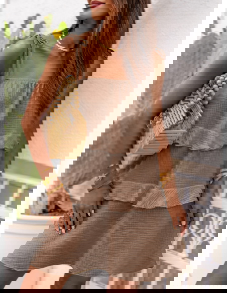 Muślinowa sukienka na ramiączkach z falbankami Rosariaa - mocha mousse