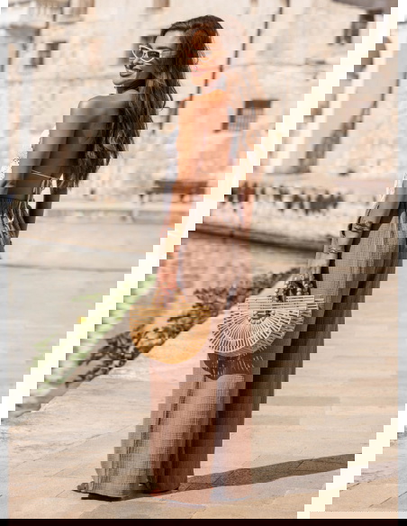 Muślinowe spodnie Iride - mocha mousse to idealna propozycja dla miłośniczek swobodnego stylu. Te spodnie zachwycają delikatnym odcieniem ciepłego brązu, który świetnie komponuje się z letnim słońcem i miejskimi przestrzeniami. Ich szeroki fason dodaje nonszalancji i podkreśla luz w każdej stylizacji. Wysoki stan subtelnie modeluje sylwetkę i jednocześnie gwarantuje wygodę. Lekko opadające nogawki tworzą efekt płynnego ruchu, co dodaje całości dynamiki. Elastyczna talia umożliwia idealne dopasowanie i komfort nawet podczas intensywnych aktywności. Dzięki uniwersalnemu krojowi spodnie można łączyć z wieloma różnymi elementami garderoby. Niezależnie od dodatków, zachowują harmonijny charakter i naturalny urok. Ich subtelny odcień mocha mousse sprawia, że każda stylizacja nabiera głębi i przyciąga spojrzenia. To kwintesencja letniej swobody i nonszalanckiej elegancji, którą doceni każda kobieta.