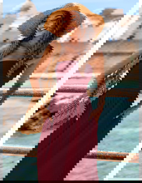 Bordowa muślinowa długa sukienka bez ramiączek Federicaa