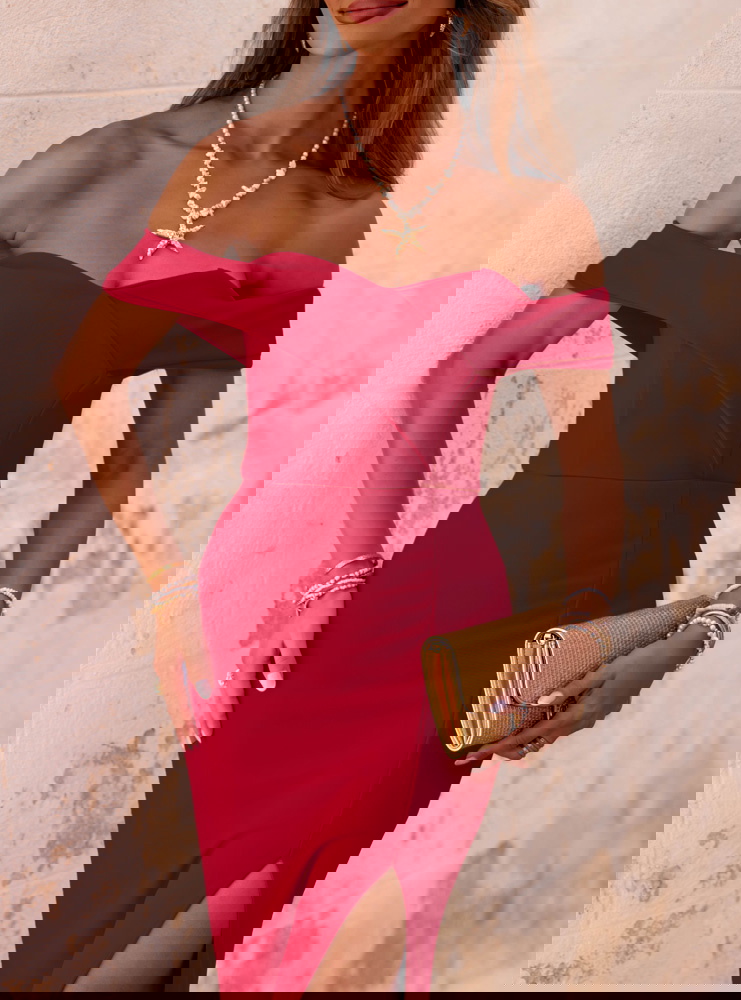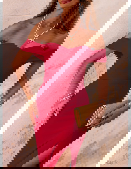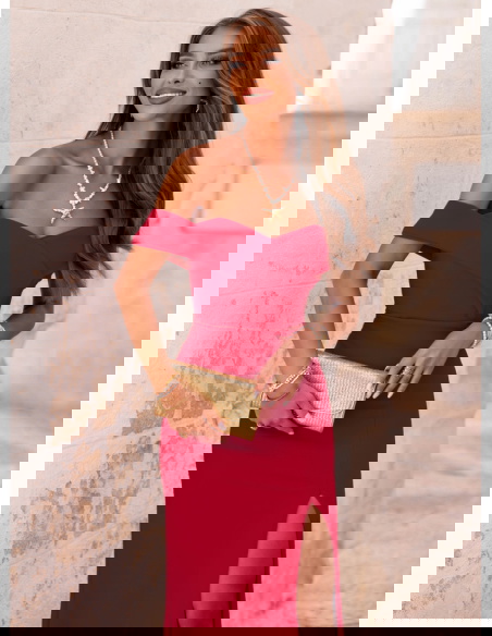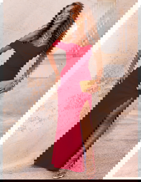 Malinowa długa sukienka z rozcięciem Palladia to kreacja, która natychmiast przyciąga spojrzenia. Jej wyjątkowy kolor dodaje energii i kobiecego wdzięku, sprawiając, że każda kobieta poczuje się pewnie i zmysłowo. To model, który nie potrzebuje wielu dodatków – sama w sobie jest efektowna i wyrazista. Sukienka pięknie eksponuje ramiona dzięki fasonowi z odkrytymi ramionami. Delikatne rozcięcie z przodu subtelnie podkreśla nogi, dodając sylwetce lekkości i seksapilu. Dopasowany krój świetnie układa się na ciele i podkreśla kobiecą figurę. Tył zapinany na zamek zapewnia wygodę zakładania i idealne dopasowanie. To model, który łączy w sobie elegancję i nowoczesność w najlepszym wydaniu. Wystarczy spojrzeć, by zakochać się w tym fasonie od pierwszej chwili. Idealna dla kobiet, które lubią klasykę z nutką odważnego akcentu.