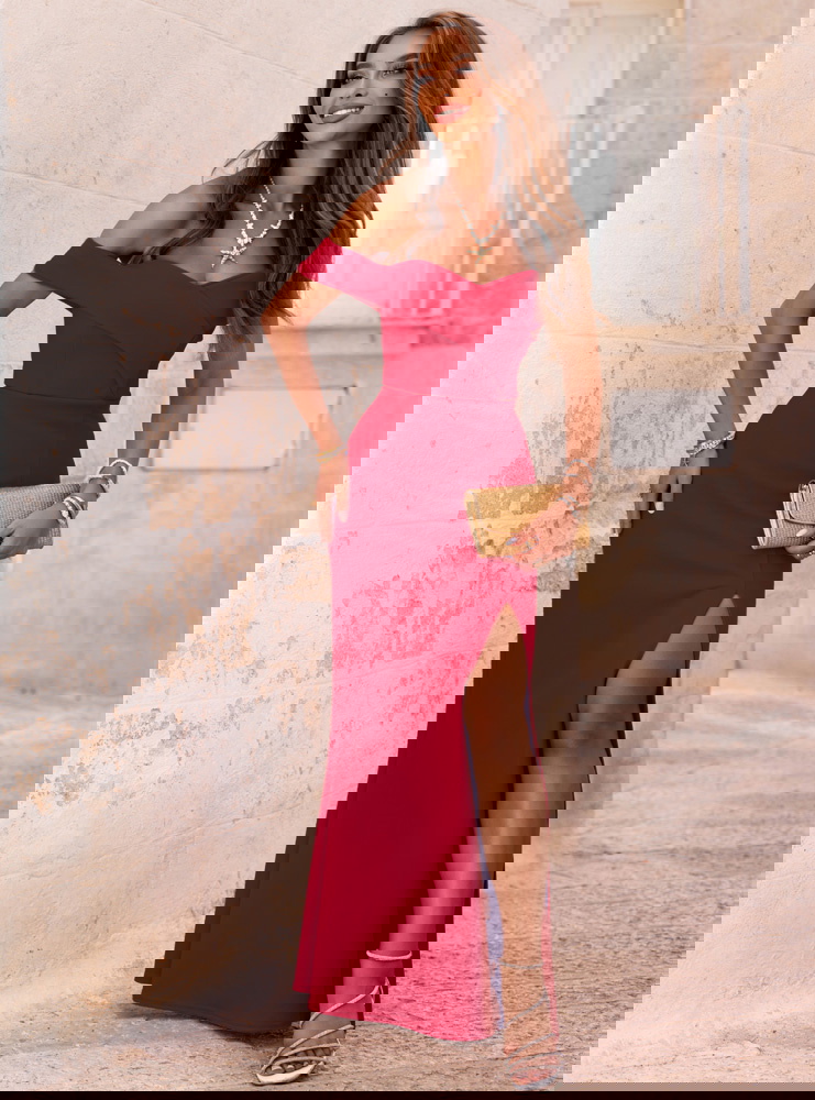 Malinowa długa sukienka z rozcięciem Palladia to idealna propozycja na wyjątkowe okazje, które wymagają eleganckiej stylizacji. Świetnie sprawdzi się podczas wesel, przyjęć koktajlowych, balów i uroczystych kolacji.