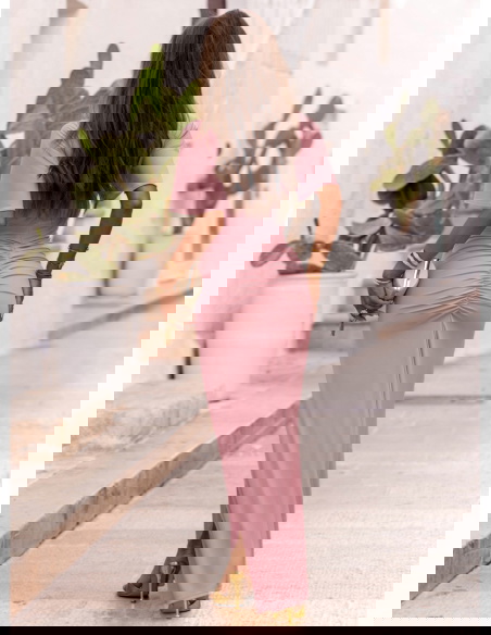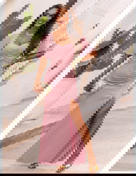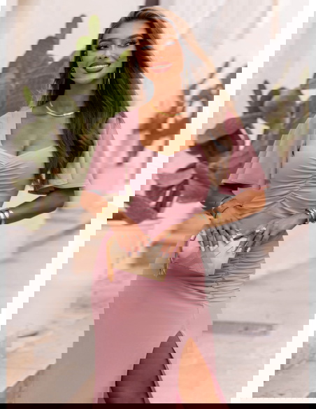 Długa sukienka z rozcięciem Ianira - brudny róż