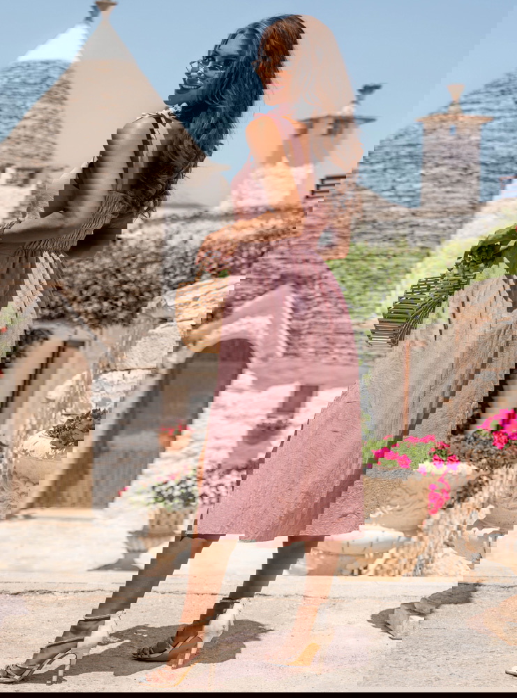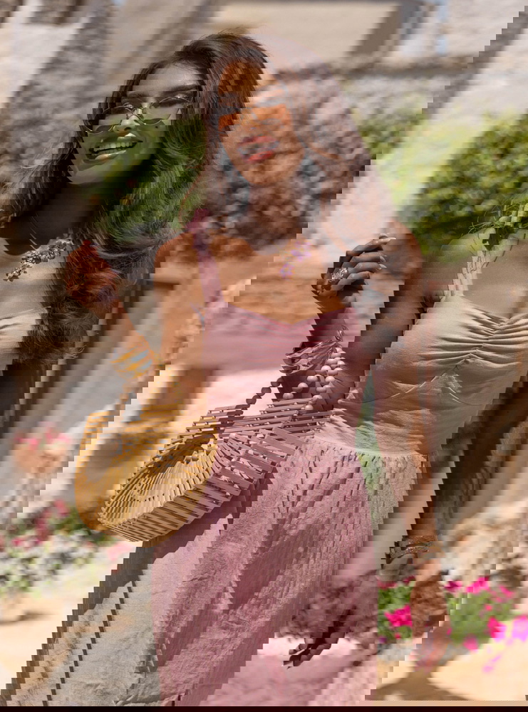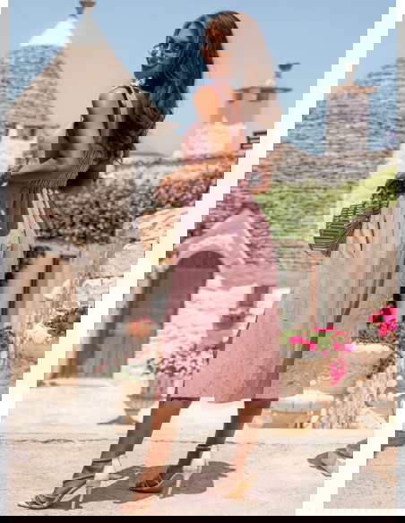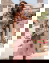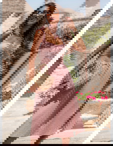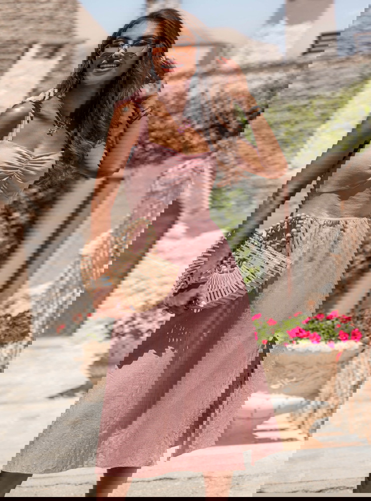 Sukienka midi z rozcięciem Ornellaa - brudny róż to kwintesencja kobiecego uroku i letniej swobody. Jej delikatny, lekko przygaszony odcień różu przyciąga wzrok, ale nie dominuje – idealny balans między subtelnością a stylem. To model, który podkreśla sylwetkę, jednocześnie zapewniając komfort przez cały dzień. Zmysłowe wiązania na ramionach dodają dziewczęcego wdzięku, a marszczenie w talii pięknie eksponuje figurę. Dzięki rozcięciu z boku sukienka nabiera lekkości i nutki zalotności. Stylowa długość midi sprawia, że świetnie sprawdzi się zarówno na co dzień, jak i w bardziej eleganckim wydaniu. Połączenie klasycznego fasonu z modnymi detalami daje efekt, który trudno przeoczyć. Ta sukienka nie potrzebuje wiele, by zabłysnąć – wystarczy dodać ulubione dodatki. Będzie Twoją sprzymierzeńczynią w każdej sytuacji, w której chcesz poczuć się kobieco i pewnie. Jeśli szukasz sukienki, która mówi „jestem gotowa na lato” – właśnie ją znalazłaś.