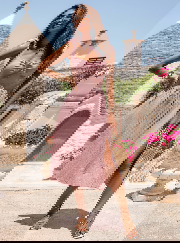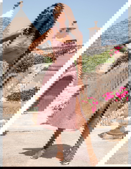 Sukienka midi z rozcięciem Ornellaa - brudny róż to must-have na letnie dni i wieczory. Łączy w sobie wygodę i styl, dając Ci wiele możliwości stylizacji.