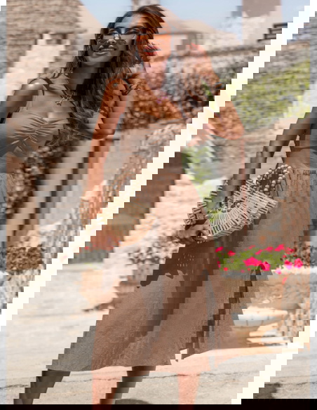 Sukienka midi z rozcięciem Ornellaa - mocha mousse to idealna propozycja na letnie dni, w których chcesz poczuć się kobieco i swobodnie. Jej subtelny, ale wyrazisty odcień mocha sprawia, że przyciąga spojrzenia, a jednocześnie doskonale komponuje się z dodatkami w różnych stylach. Dzięki dopasowanej górze i rozkloszowanemu dołowi, sukienka pięknie podkreśla sylwetkę, nie krępując przy tym ruchów. To model, który zachwyca swoją prostotą i detalami – rozcięcie z boku dodaje jej lekkości i odrobiny zmysłowości. Ramiączka wiązane na kokardki wprowadzają romantyczny akcent, a marszczenia na biuście subtelnie modelują dekolt. Całość prezentuje się bardzo kobieco, a zarazem nowocześnie. To sukienka, która łączy wygodę z modą – bez kompromisów. Idealna na ciepłe dni, kiedy chcesz wyglądać pięknie, a jednocześnie czuć się komfortowo. Założysz ją zarówno na co dzień, jak i na wyjątkowe okazje. Sukienka mocha mousse to must-have w letniej garderobie każdej kobiety.