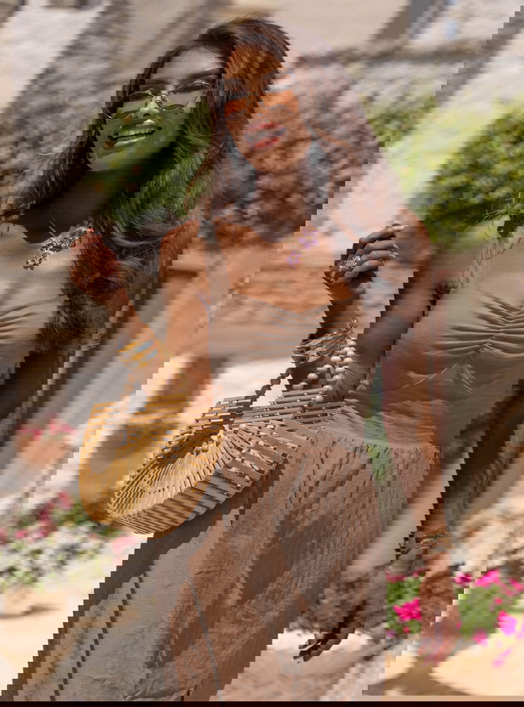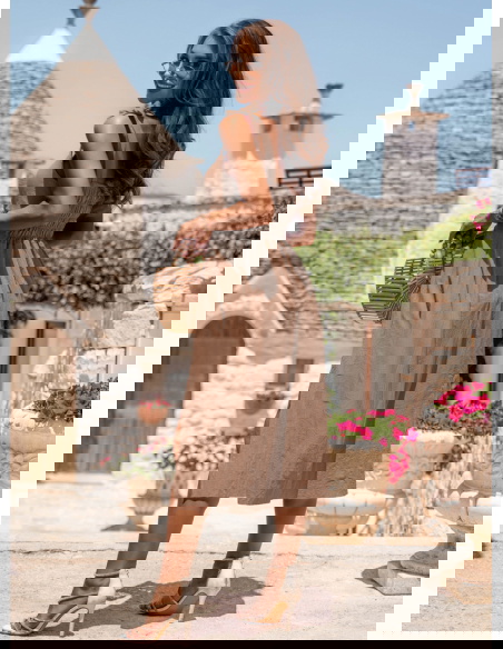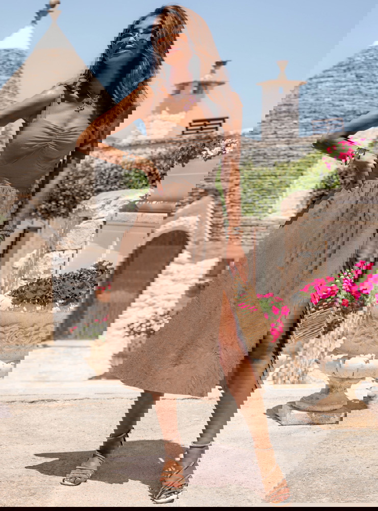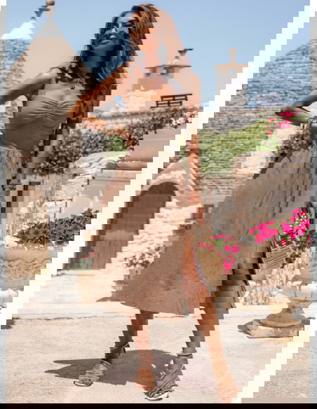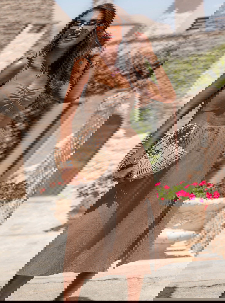 Sukienka midi z rozcięciem Ornellaa - mocha mousse świetnie sprawdzi się na spacer po mieście, kolację na tarasie czy letni wyjazd. Możesz ją założyć na spotkanie z przyjaciółkami, a także na randkę w ciepły wieczór.