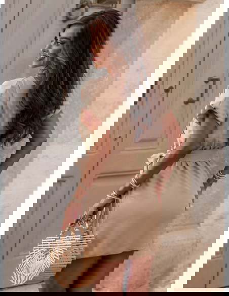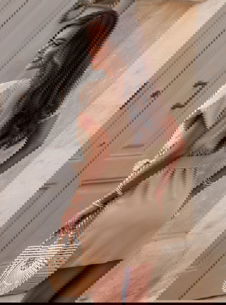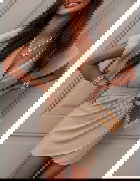 Beżowa sukienka mini przekładana Shabba sprawdzi się idealnie na wakacyjne spacery, romantyczne kolacje i letnie przyjęcia w plenerze. Możesz ją założyć na garden party, koktajl z przyjaciółkami czy spotkanie na mieście.