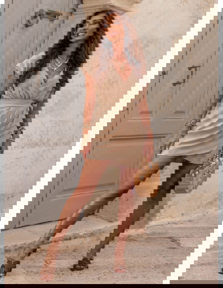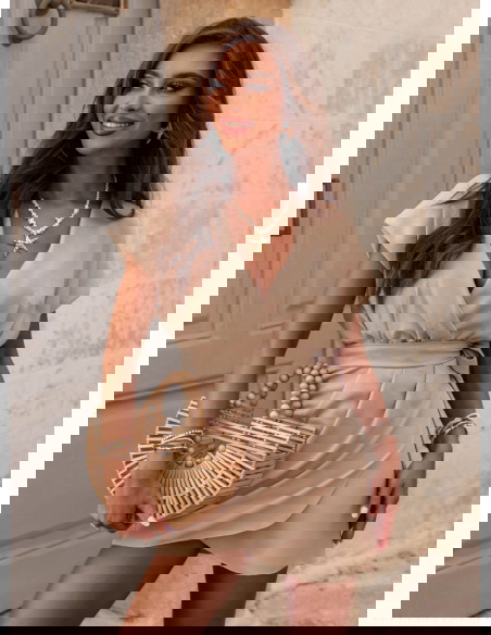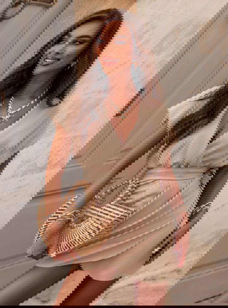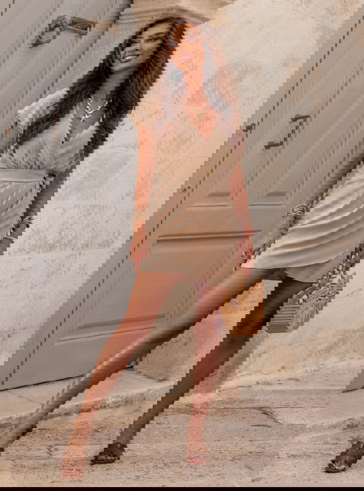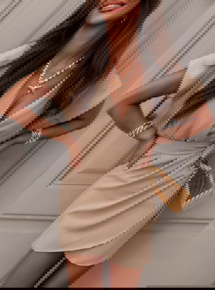 Beżowa sukienka mini przekładana Shabba to prawdziwa definicja letniej elegancji w kobiecym wydaniu. Jej delikatny, klasyczny kolor beżu doskonale współgra z ciepłymi tonami skóry i pięknie podkreśla letnią opaleniznę. To model, który subtelnie eksponuje atuty sylwetki, zachowując przy tym klasę i lekkość. Krój kopertowy z wiązaniem w talii optycznie modeluje figurę, tworząc piękne proporcje. Dzięki krótkim rękawom i zmysłowemu dekoltowi, sukienka łączy w sobie luz z nutą szyku. To idealny wybór dla kobiet, które lubią wyglądać stylowo bez nadmiernego wysiłku. Długość mini dodaje świeżości, a zarazem pewności siebie. Świetnie komponuje się z letnimi dodatkami – od wiklinowej torebki po złotą biżuterię. Możesz założyć ją zarówno na co dzień, jak i na bardziej wyjątkowe okazje. Beżowa sukienka przekładana to klasyk w nowoczesnym wydaniu, który zasługuje na miejsce w Twojej garderobie.