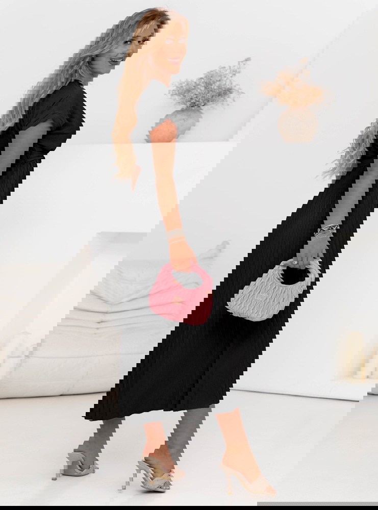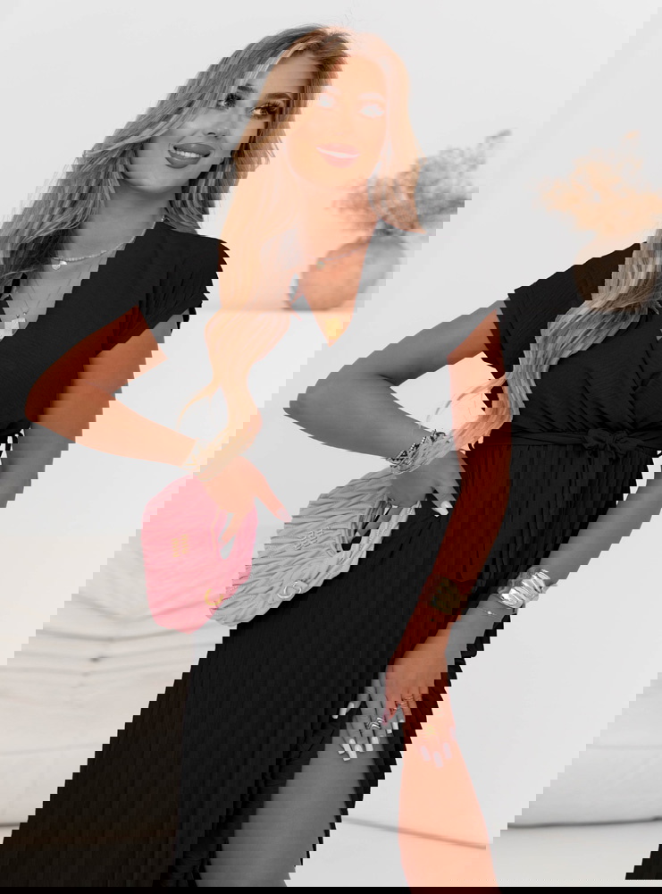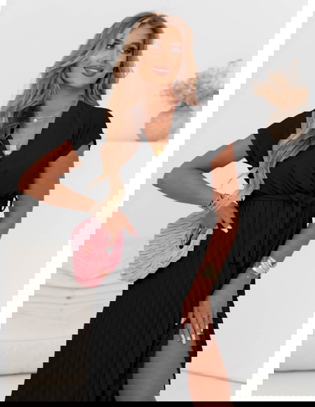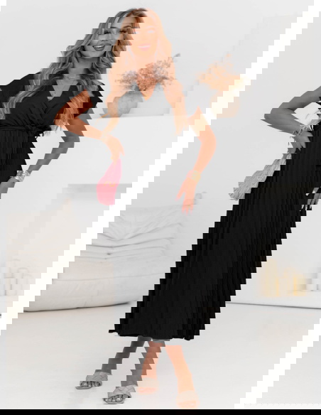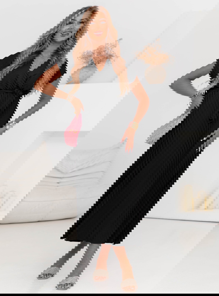 Czarna przekładana sukienka z plisowanym dołem Staishaa to model, który łączy elegancję, wygodę i uniwersalność w jednym. Jej klasyczny czarny kolor sprawia, że z łatwością dopasujesz ją do każdej okazji i dodatków. Góra sukienki w formie kopertowego dekoltu pięknie podkreśla biust i szyję, a wiązanie w talii modeluje sylwetkę, nadając figurze proporcji. Plisowany dół dodaje lekkości, delikatnego ruchu i nowoczesnego akcentu, który wyróżnia ten model spośród innych. Dzięki długości midi sukienka prezentuje się z klasą i pasuje zarówno do płaskich butów, jak i obcasów. To propozycja, która nie wychodzi z mody – zawsze wygląda dobrze i ponadczasowo. Rękawki o długości do ramienia zapewniają komfort i subtelne zakrycie, a jednocześnie zachowują letni, lekki charakter. Sukienka sprawdzi się na wiele okazji – wystarczy zmienić dodatki, by dopasować ją do sytuacji. To model dla kobiet, które chcą wyglądać stylowo, ale bez zbędnego wysiłku. Jeśli szukasz sukienki, która "robi efekt", a jednocześnie jest bardzo wygodna – właśnie ją znalazłaś.