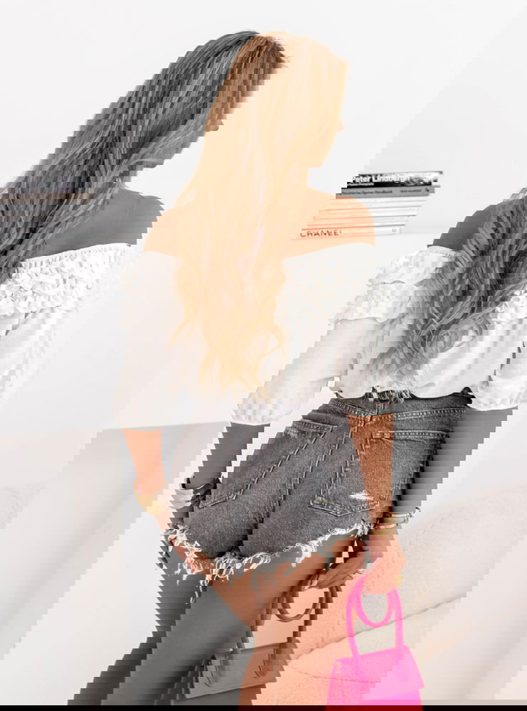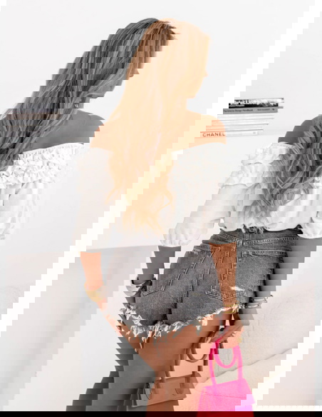 Biała bluzka hiszpanka z falbankami Elicja