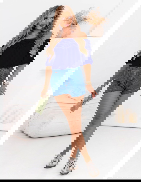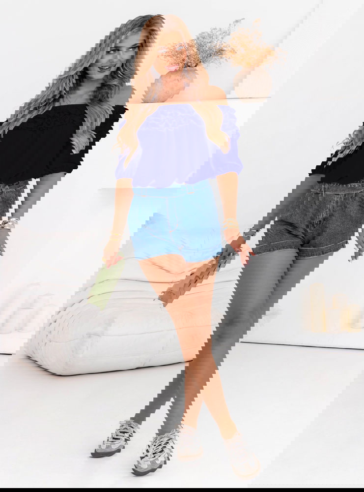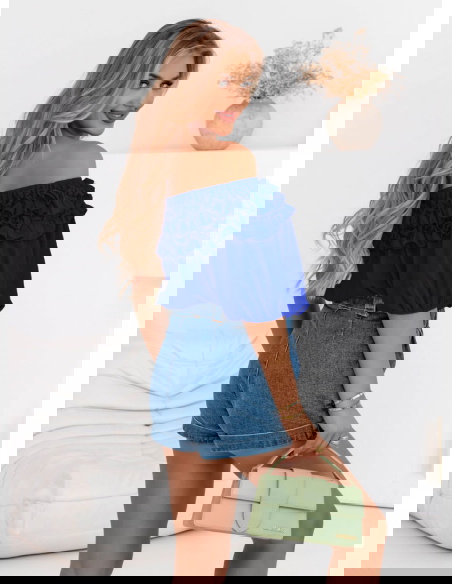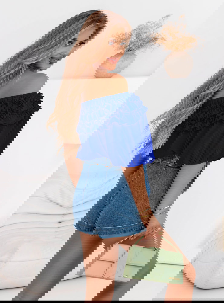 Chabrowa bluzka hiszpanka z falbankami Elicja to wyjątkowy element garderoby, który od razu przyciąga spojrzenia. Jej intensywny kolor chabru dodaje energii i świeżości każdej stylizacji. To model, który sprawia, że nawet najprostszy zestaw zyskuje kobiecy i modny charakter. Odsłonięte ramiona subtelnie eksponują dekolt i szyję, dodając sylwetce lekkości. Falbanki na linii biustu wprowadzają romantyczny klimat i dodają całości dziewczęcego uroku. Bluzka świetnie układa się na ciele i pozwala czuć się swobodnie przez cały dzień. Możesz ją zestawić z jeansami, szortami, a nawet spódnicą – za każdym razem wygląda stylowo. Hiszpański dekolt pięknie podkreśla opaleniznę i sprawdza się idealnie w letnich miesiącach. To propozycja, która łączy kobiecość z wygodą – bez przesady, ale z wyczuciem stylu. Jeśli lubisz wyróżniać się kolorem i detalami, ta bluzka szybko stanie się Twoją ulubioną.