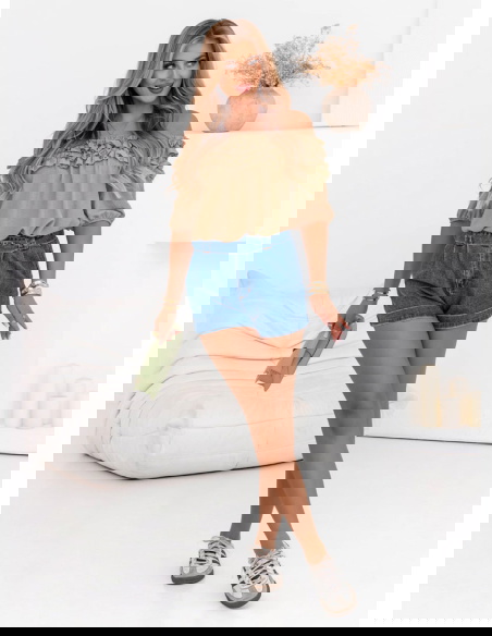Bluzka hiszpanka z falbankami Elicja - mocha mousse świetnie sprawdzi się na co dzień – na spacer, wyjście z przyjaciółką czy podczas urlopu. Będzie idealna na wakacyjne wieczory i letnie przyjęcia w ogrodzie.