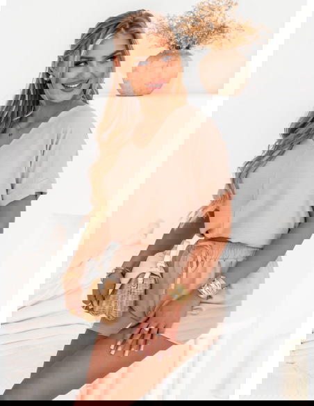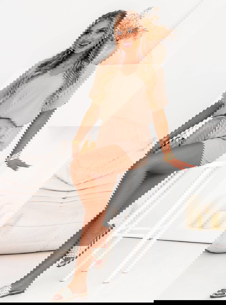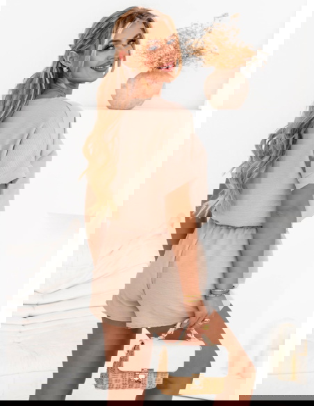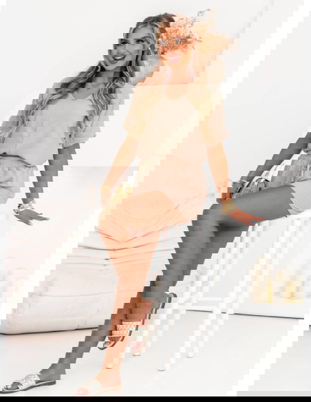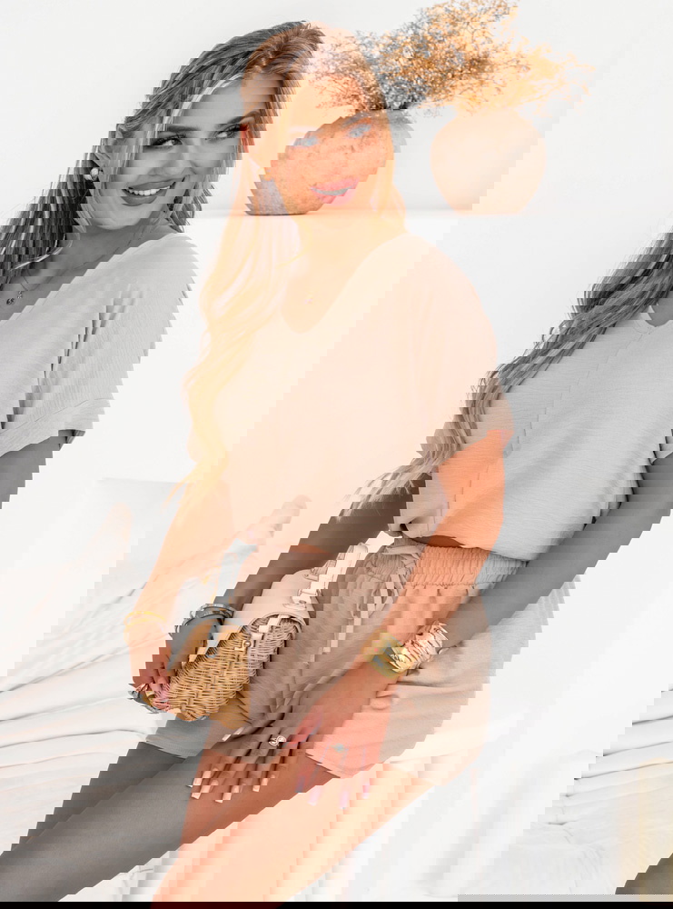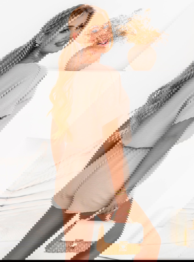Beżowy komplet bluzka + spodenki Majoriee sprawdzi się na co dzień – na spacer, zakupy, wakacyjne wyjazdy, spotkania z przyjaciółkami, a nawet jako stylowy domowy strój. Dzięki swojej prostocie może być bazą do wielu stylizacji – wystarczy zmienić dodatki, by uzyskać zupełnie inny efekt: casualowy, romantyczny czy nawet boho.