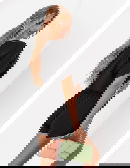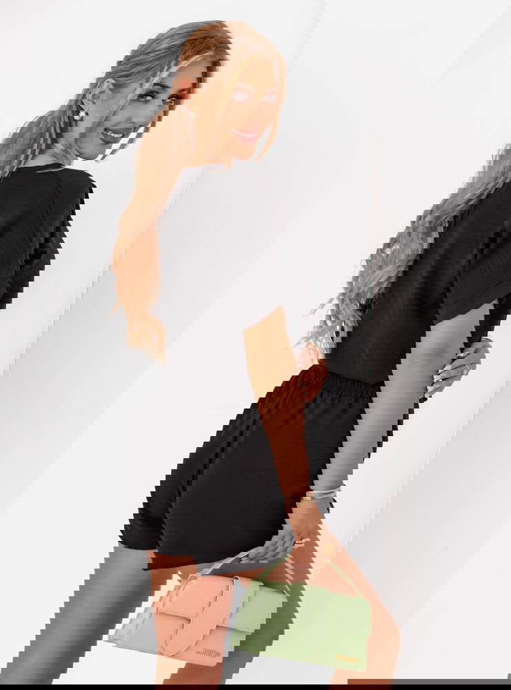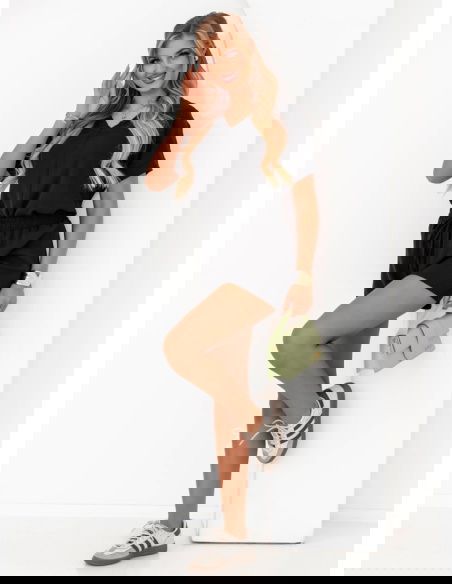 Czarny komplet bluzka + spodenki Majoriee to kwintesencja prostoty w nowoczesnym, kobiecym wydaniu. Dzięki luźnemu krojowi i elastycznej talii zapewnia pełną swobodę ruchów.